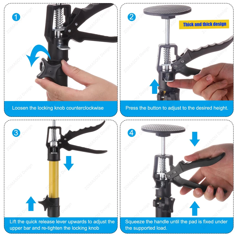 【Adjustable】: Cabinet jack support rod, can be rotated, height and length can be adjusted freely, thickened and thickened design, cabinet installation tool, can be installed quickly and easily, suitable for ceilings and door frames.