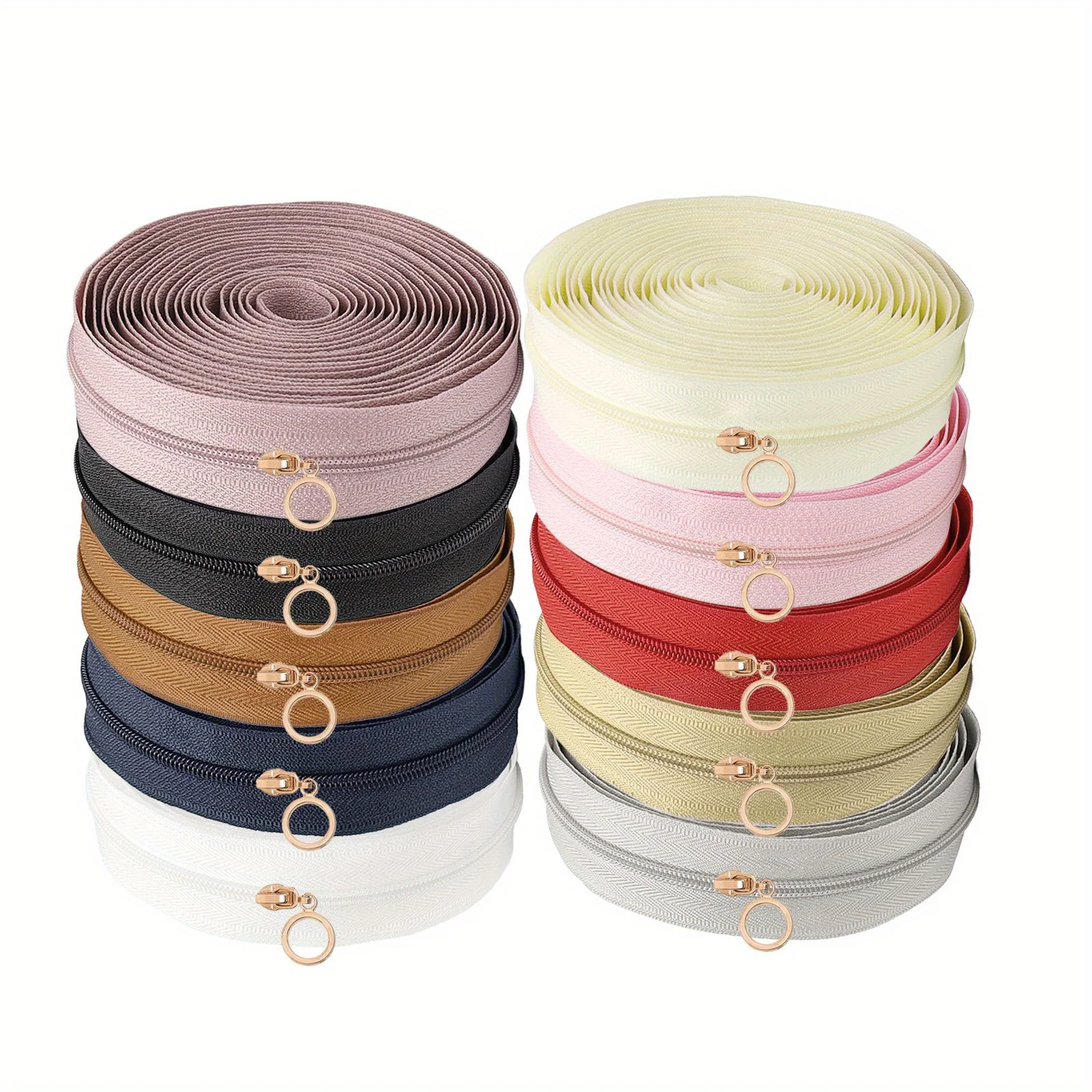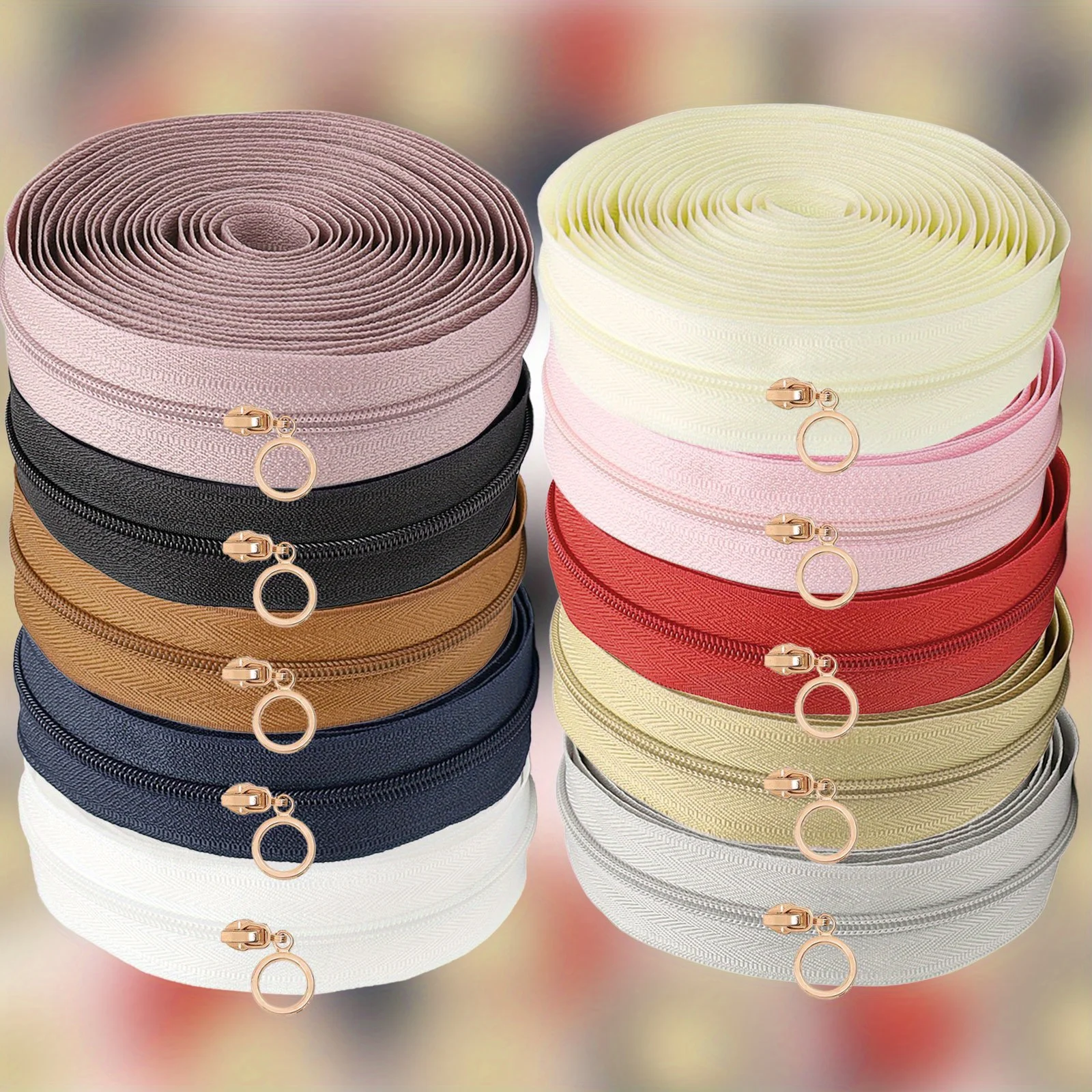 1 Set Size 3 Nylon Zipper (Multiple Colors) with 10 Light Gold Circular Zipper Pulls – For Home Sewing DIY Zipper Replacement