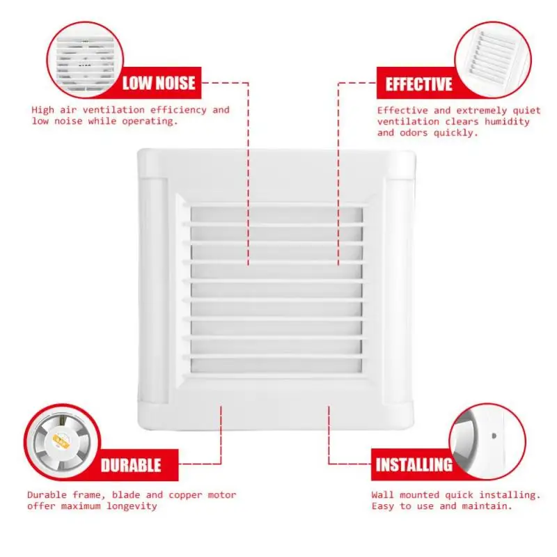 Wall mounted exhaust fan widely used at home bathroom, toilet, kitchen, garage and so on. It features with high work efficiency, low noise and long service life. With modern and simple design, the whole and blades are and sturdy.