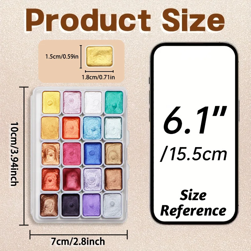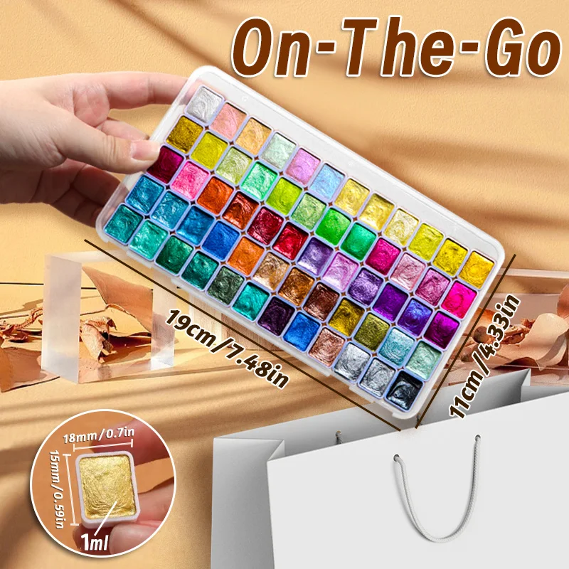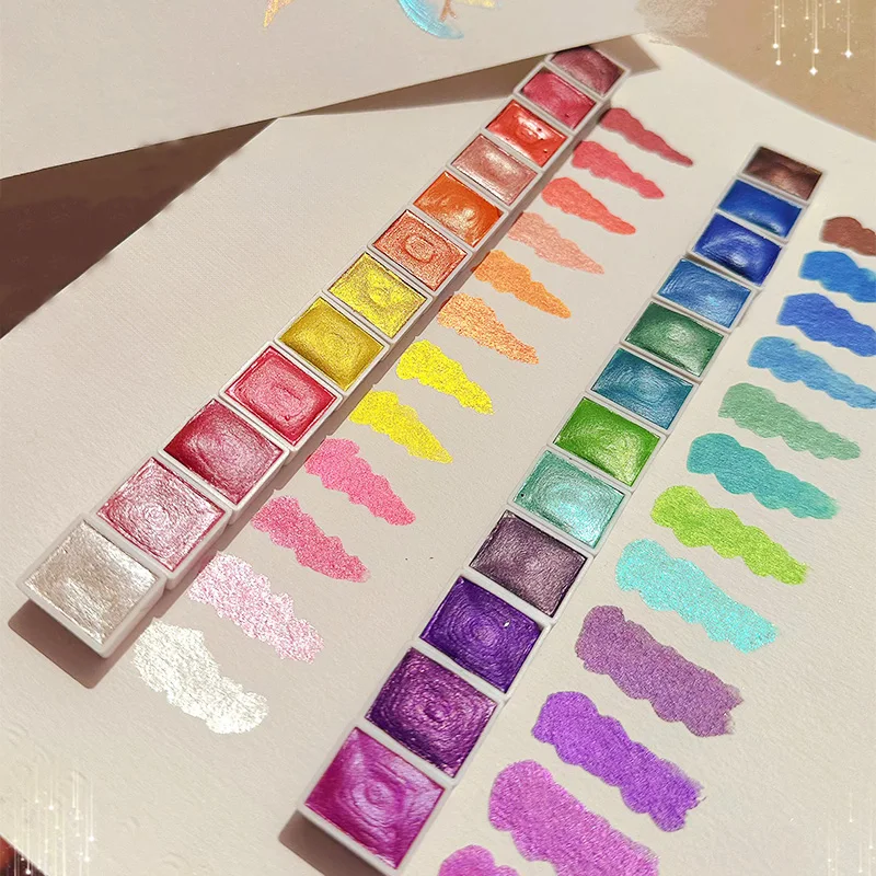20/24/48/60 Colors Pearl Watercolor Pigment,Metallic,Shimmer,Glitter Solid Paint Mini Travel Portable Kit for Painting,Writing