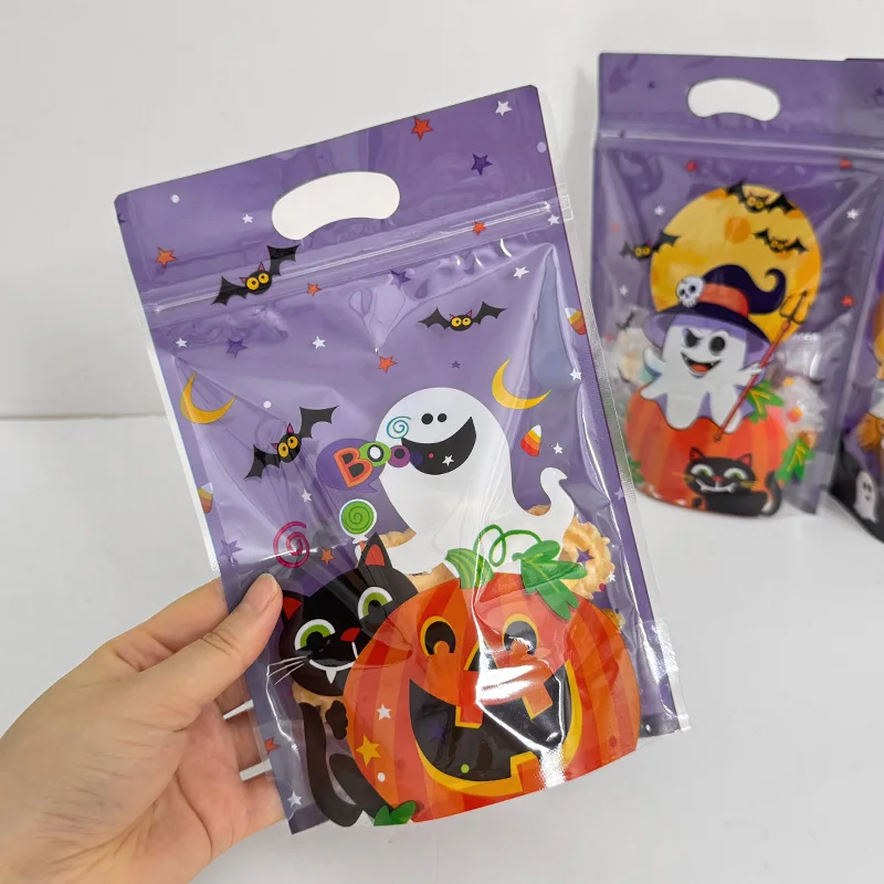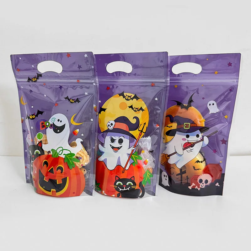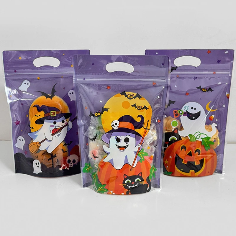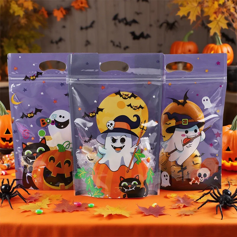 20/50Pcs Halloween Candy Bag Cartoon Pumpkin Ghost Gift Cookies Ziplock Bags Halloween Party Decor Kids Trick or Treat Favors