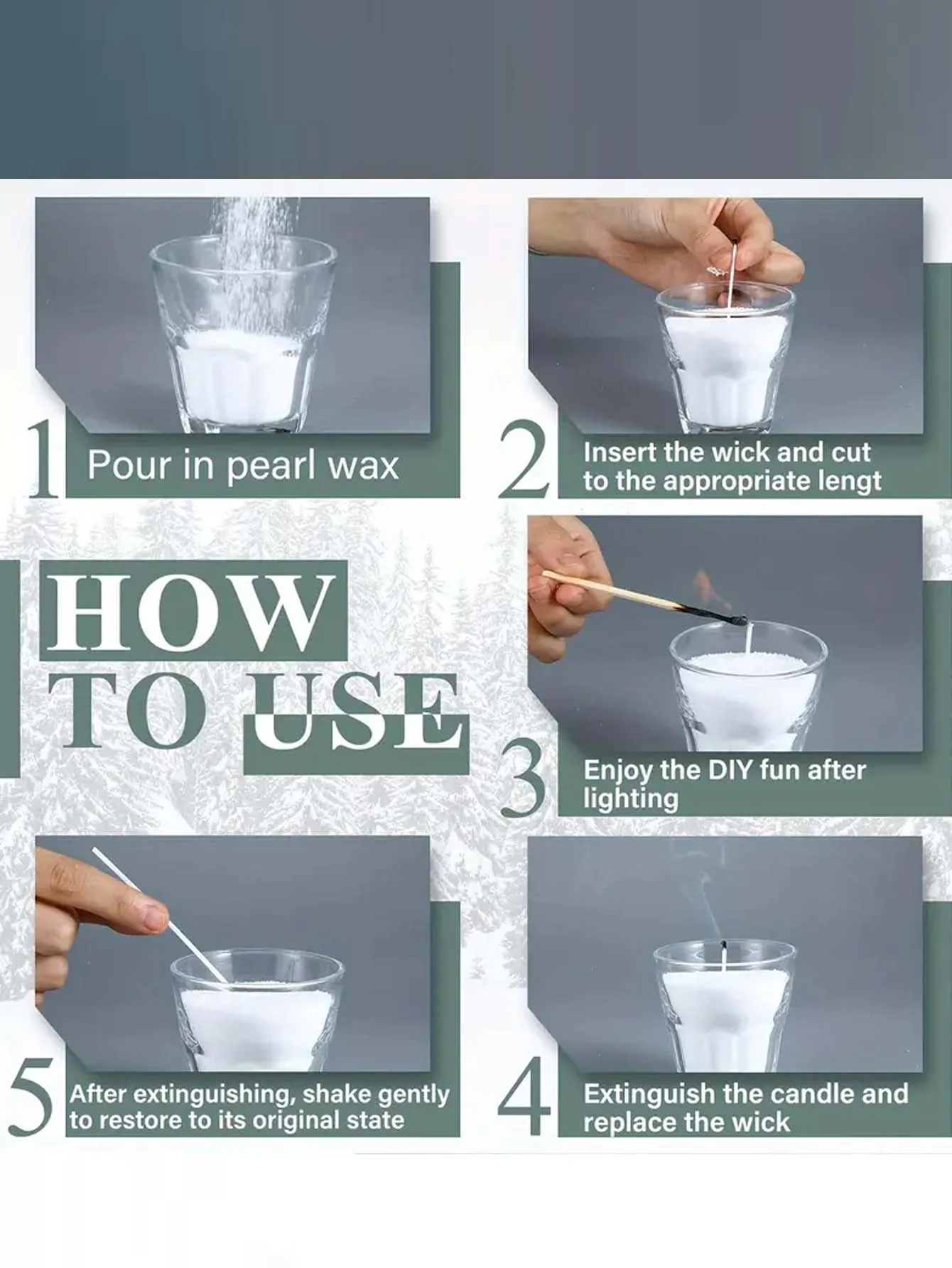 200G Pearl Candle and Candle Wicks- Sand Wax, Pearl Candle Wax, for Candle Making, Wedding, Party Candle Beads and Candle Wick