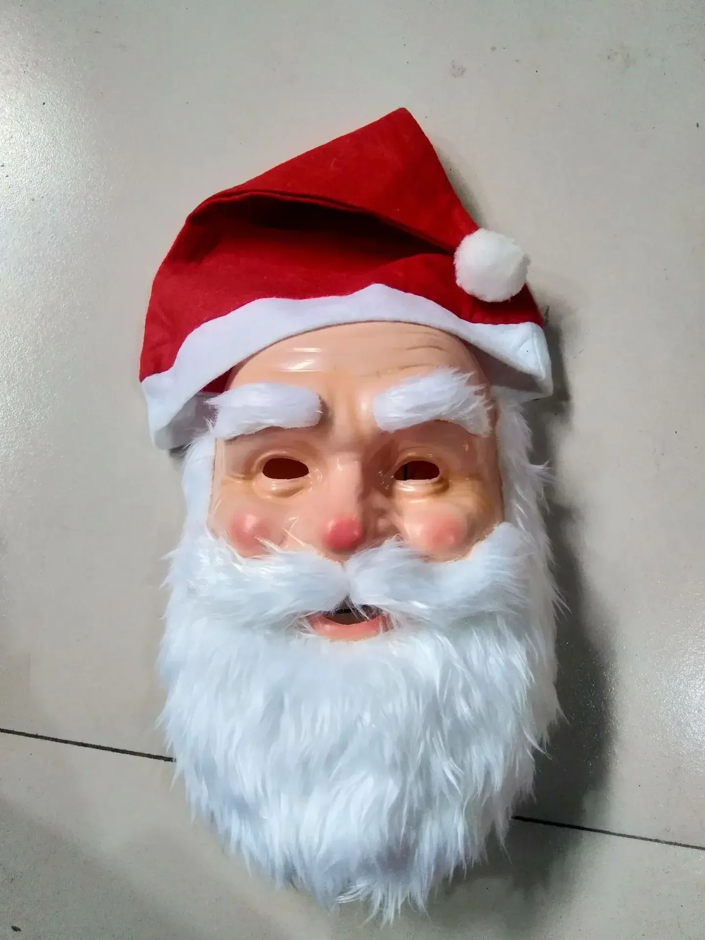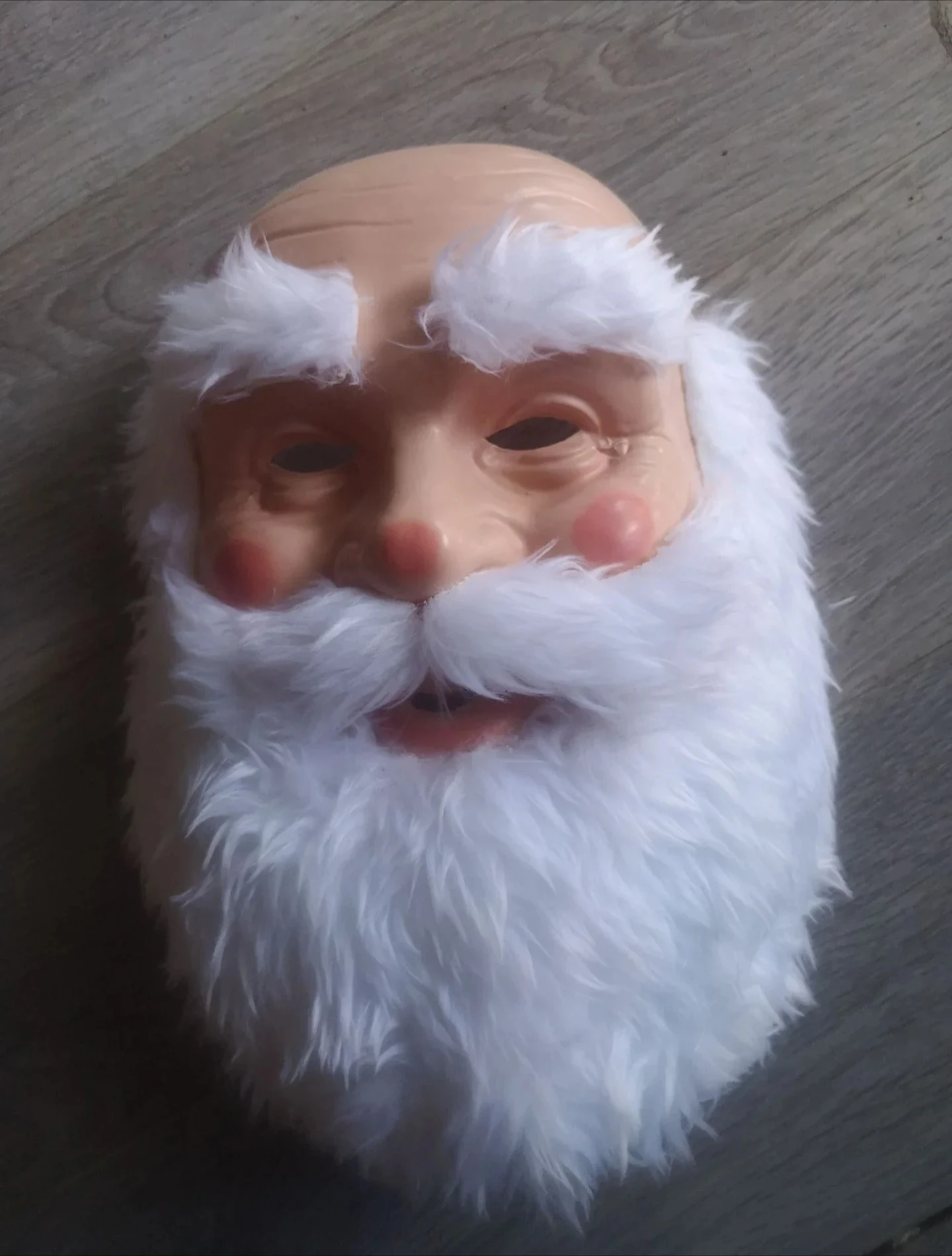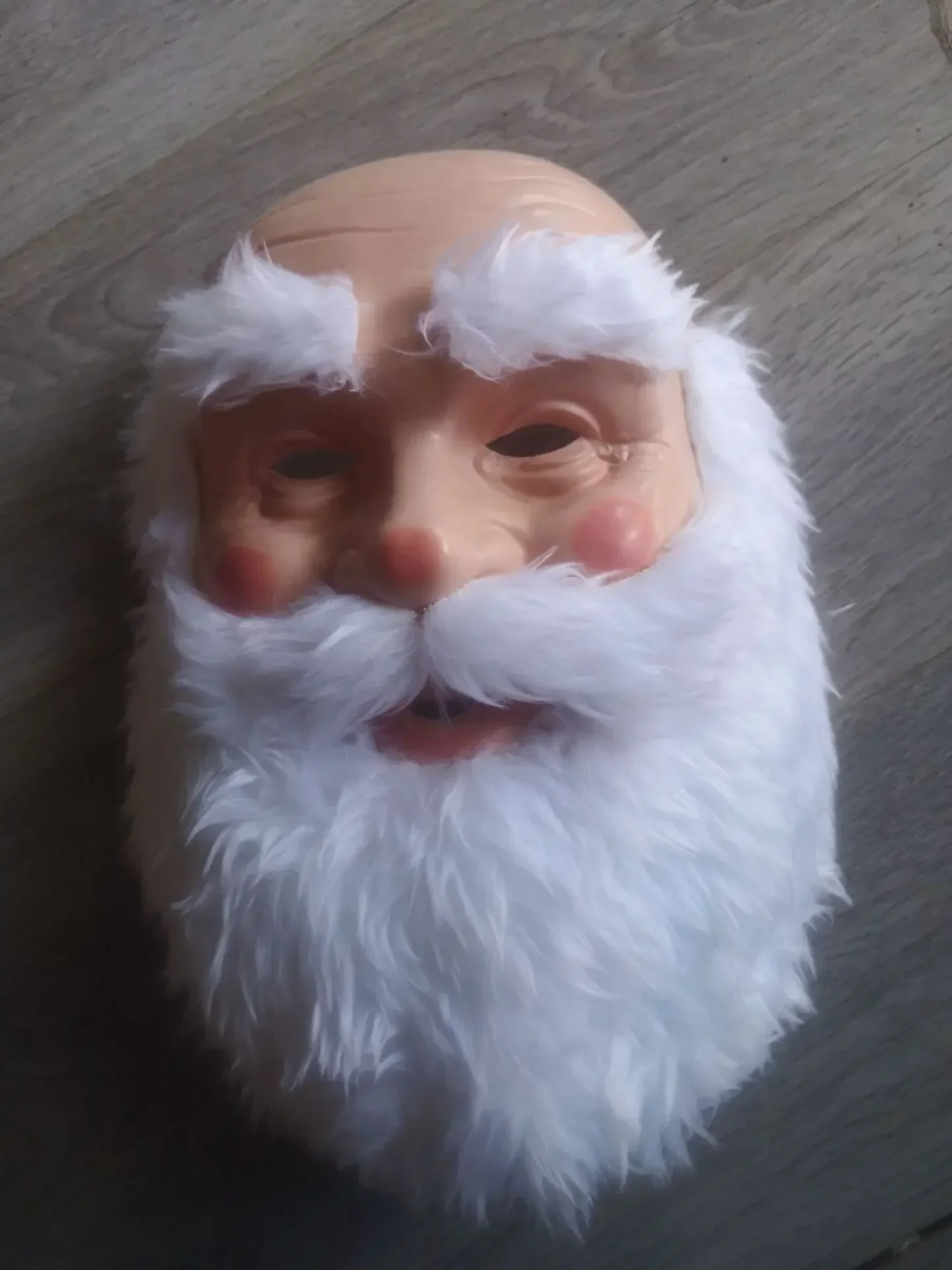 Realistic santa claus mask, are you still looking for the old style santa wing with beard set? forget it! just try some new this year. the cute santa claus is coming with a natural plastic latex for head mask with white beard, and christmas hat. make santa look more lively and lovely,buying it is your best christmas costume choice.perfect mask will make your friends and neighbors shock and crazy.
