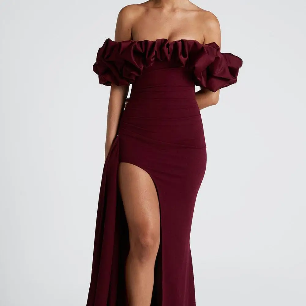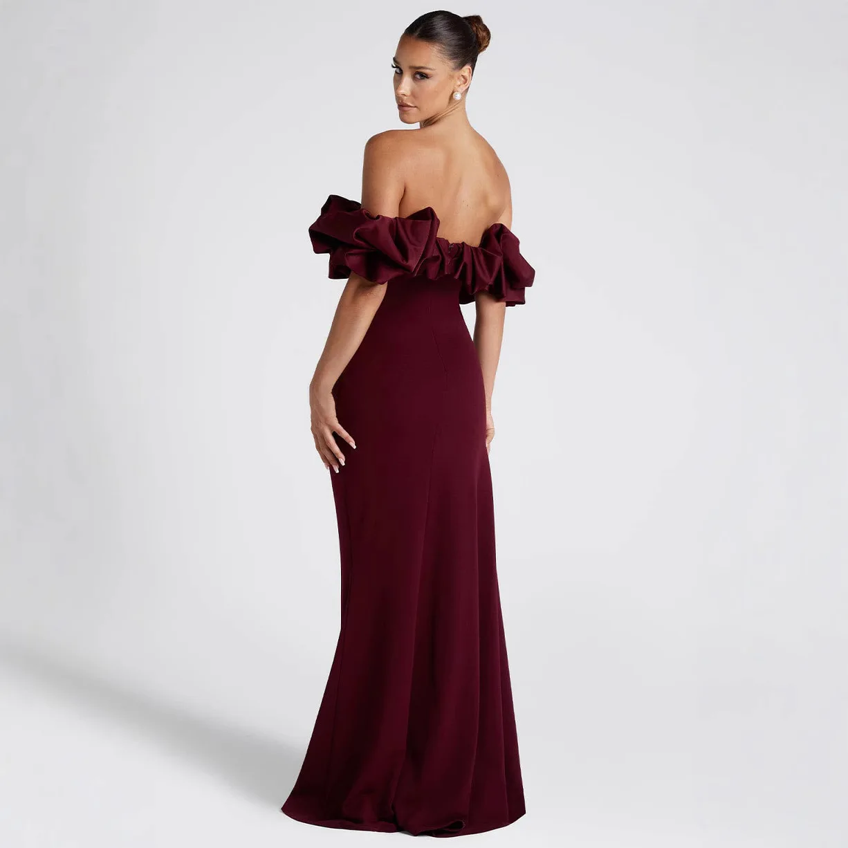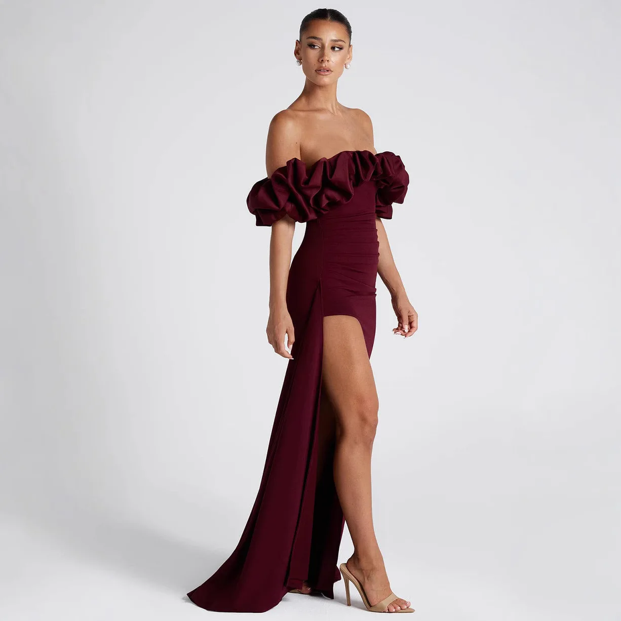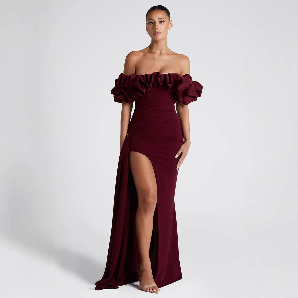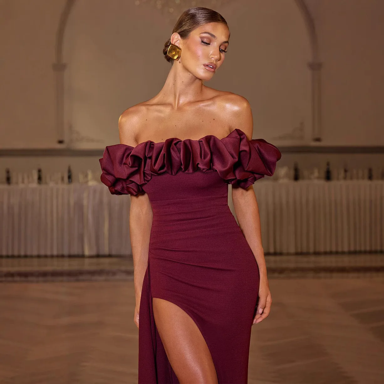2025 socialite temperament banquet dress, one shoulder slit off off shoulder fish tail dress