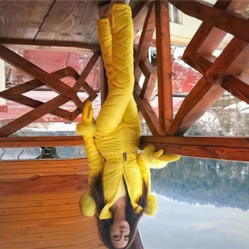 Stylish Waist Design: The sleek waist design of this jumpsuit ski jacket offers a flattering fit without adding bulkiness, allowing you to maintain warmth while exuding a fashionable look on the slopes.