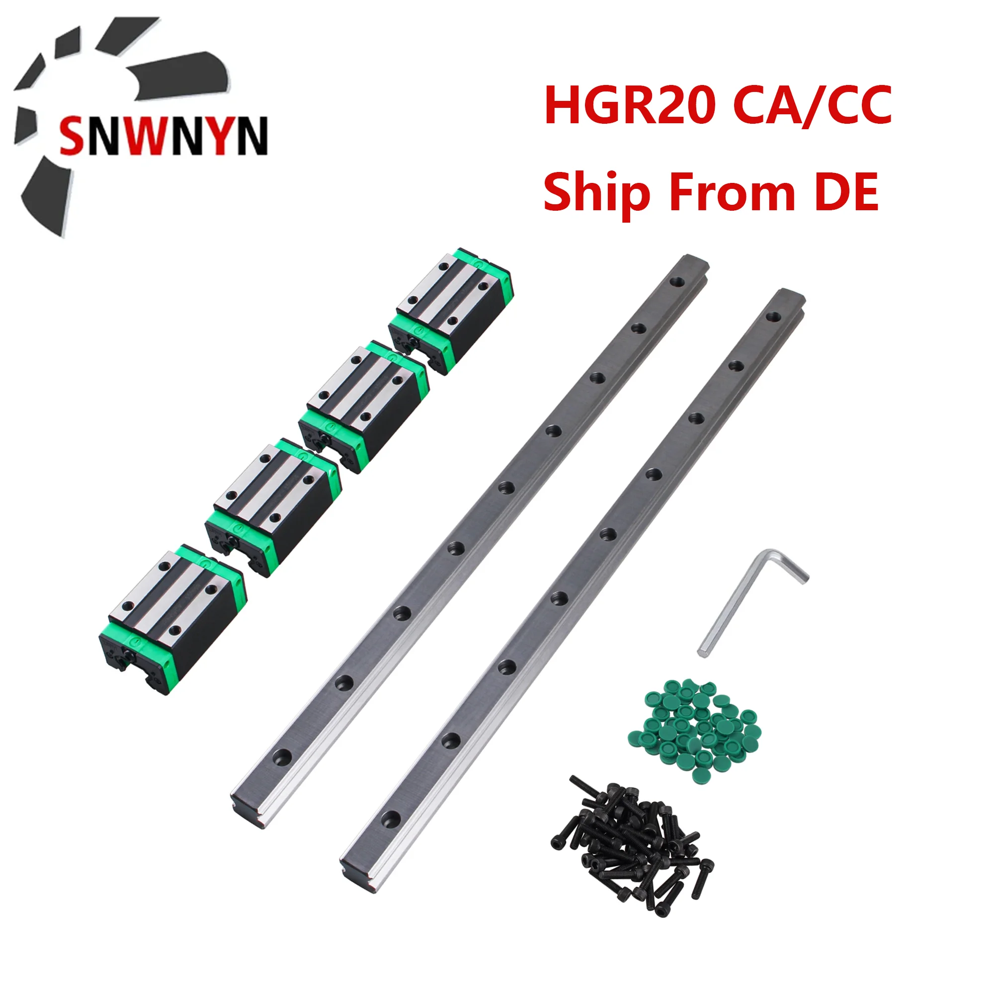 2pcs Square Linear Guide Rail HGR20 200mm-1500mm + 4pcs HGH20CA/HGW20CC Slide Blocks Carriage For CNC Parts Shipping From DE