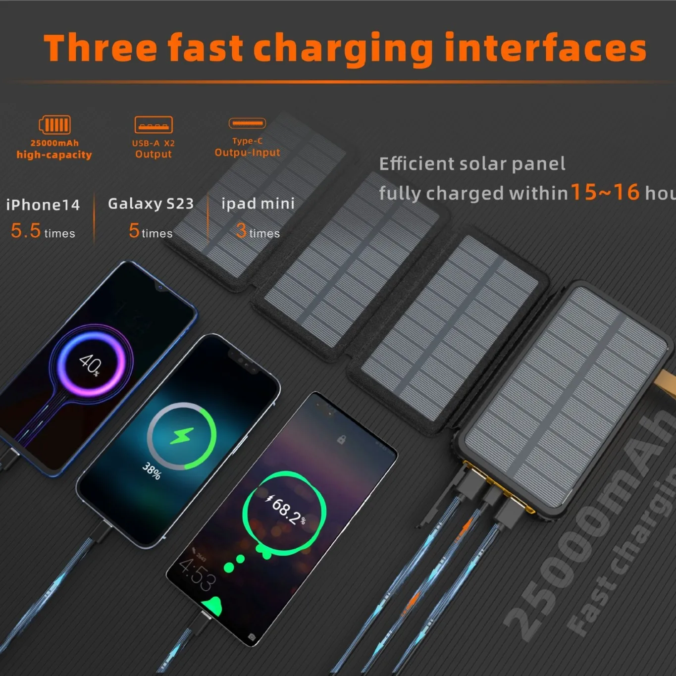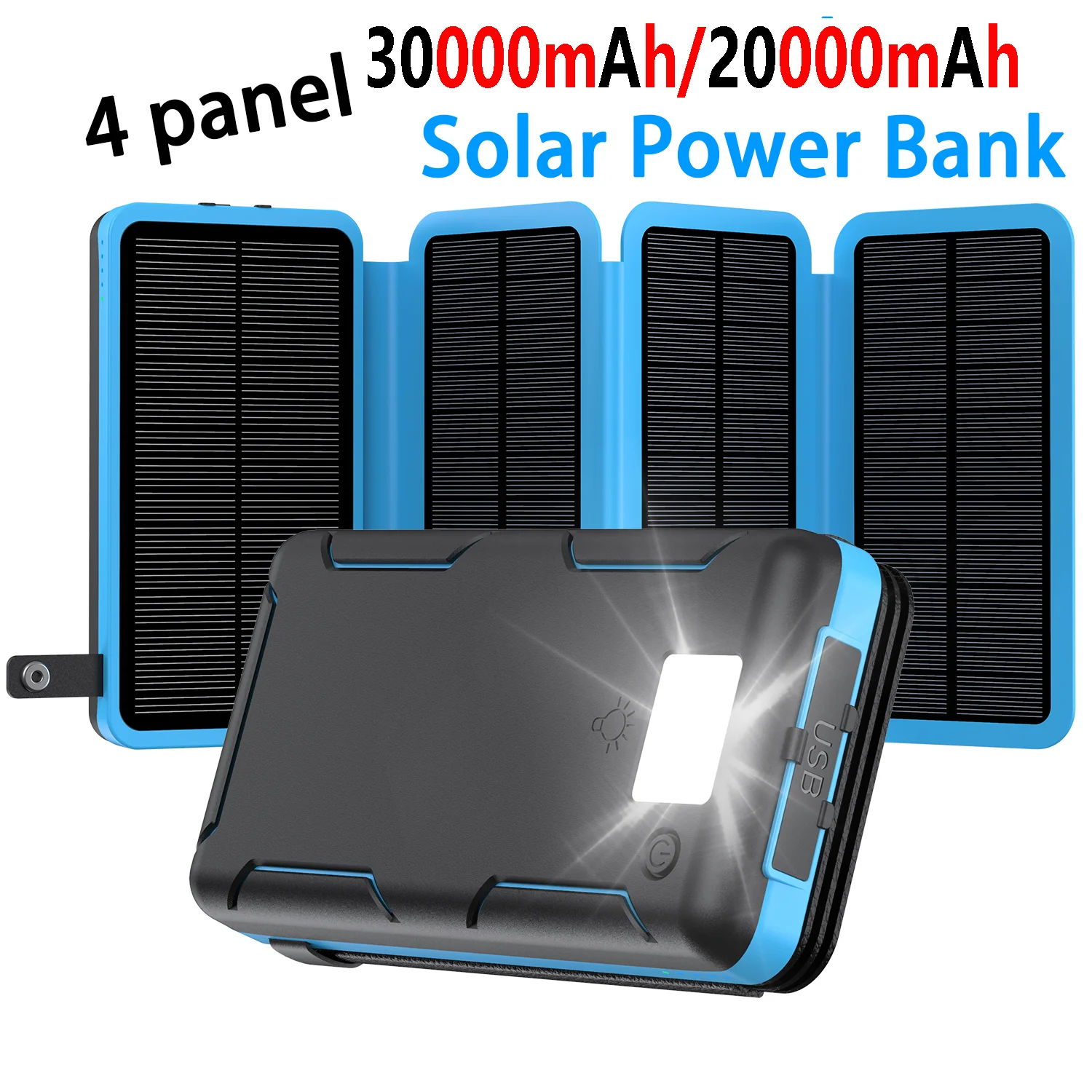 Flip Panel Solar Power Bank 30000mAh/20000mAh Charger USB 5V DC dual charging solar/Type-C portable for camping &&mobile device For Mobile Huawei、Xiaomi、Samsung,Apple