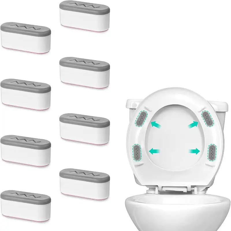 5.Fonction and design: Antislip or increase the height of the toilet seat, the size of the bumpers fit most models of toilet seats.
