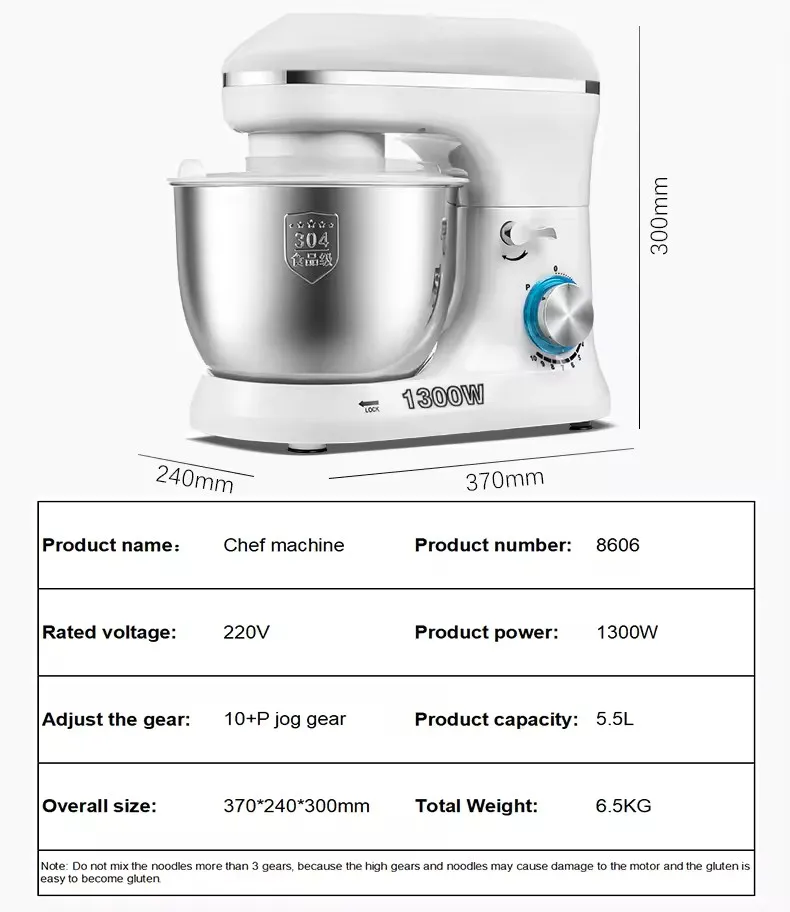 - Accessory Type: Wire Whip,Flat Beater,Dough Hook,Mixing Bowl