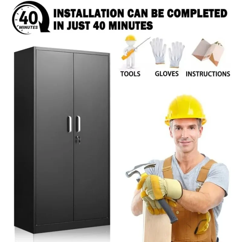 Adjustable Steel Storage Cabinet with Lockable Doors, Garage Shelving Unit, Tool and Pantry Organizer – 71’H