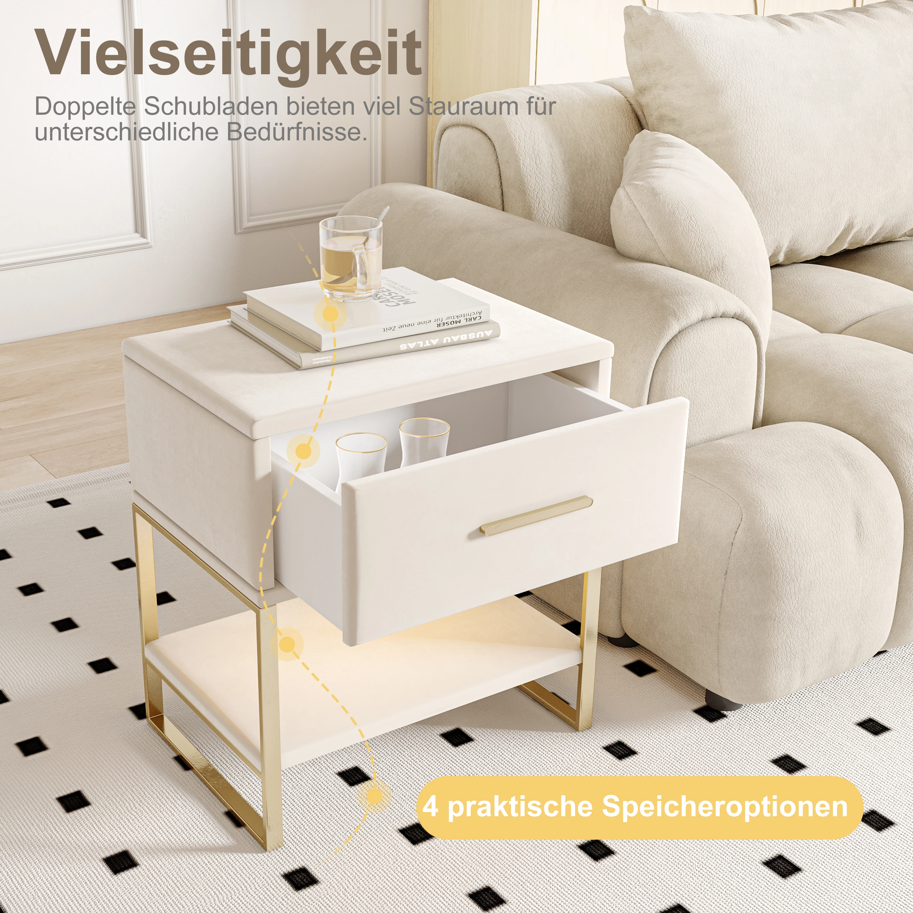 1. The velvet upholstery on the bedside table adds comfort and a touch of class.