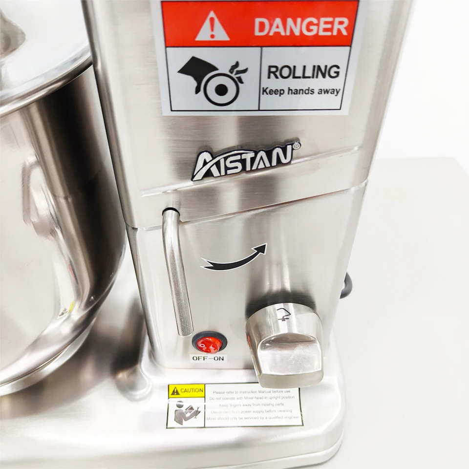 ● Excellent Performance: Switch lock function, indicator function; gear planetary transmission structure; head lift function (has a bent lever, to adjust the distance between the bowl and the head of machine, and achieve to add ingredients or remove accessories easily). High power, low noise, high beat rate (ULTRA-SILENT DESIGN).
