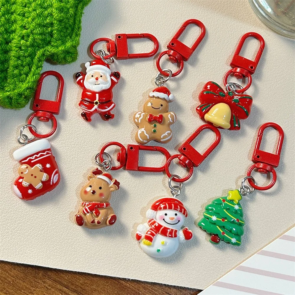 Cartoon Christmas Keychain Santa Claus Bell Gingerbread Man Xmas Tree Hanging Pendants Noel Natal Merry Christma Decor 2025