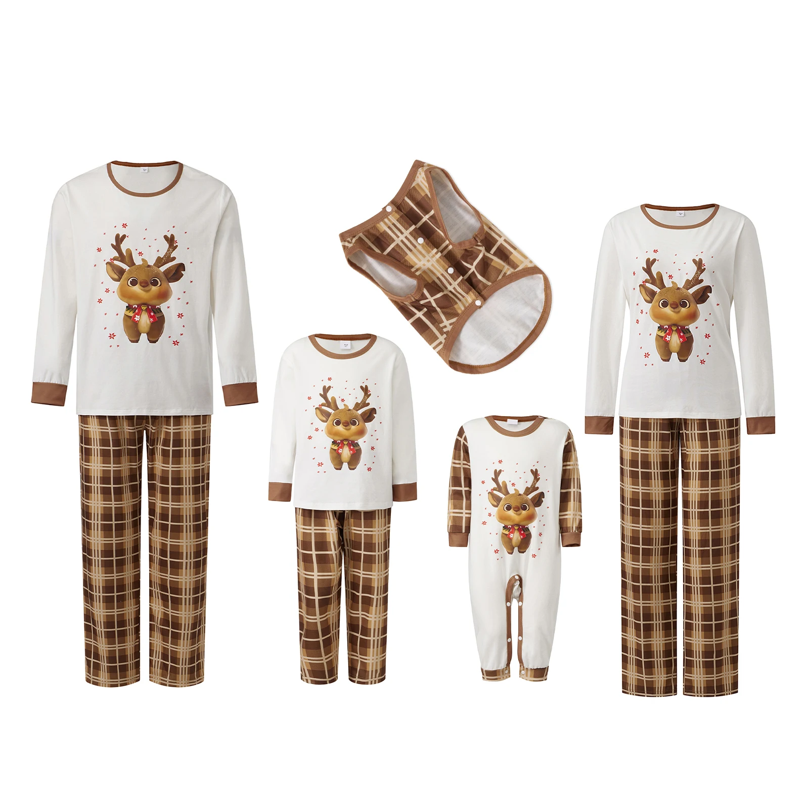 Christmas Family Pajamas Matching Set Long Sleeve Elk Print Tops and Plaid Pants Sleepwear