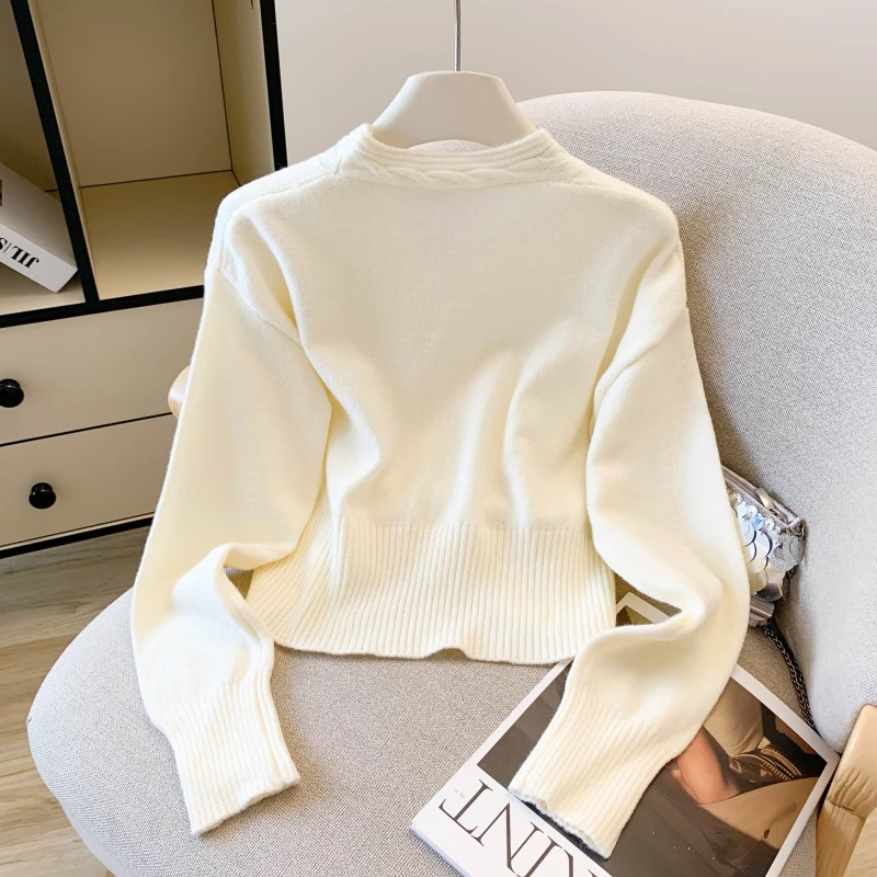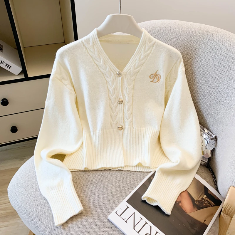 College Style Sexy V-Neck Cardigan Sweater For Women Autumn Winter Long Sleeve Sweet Knitted Tops Ladies
