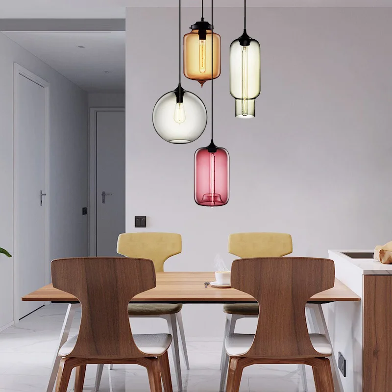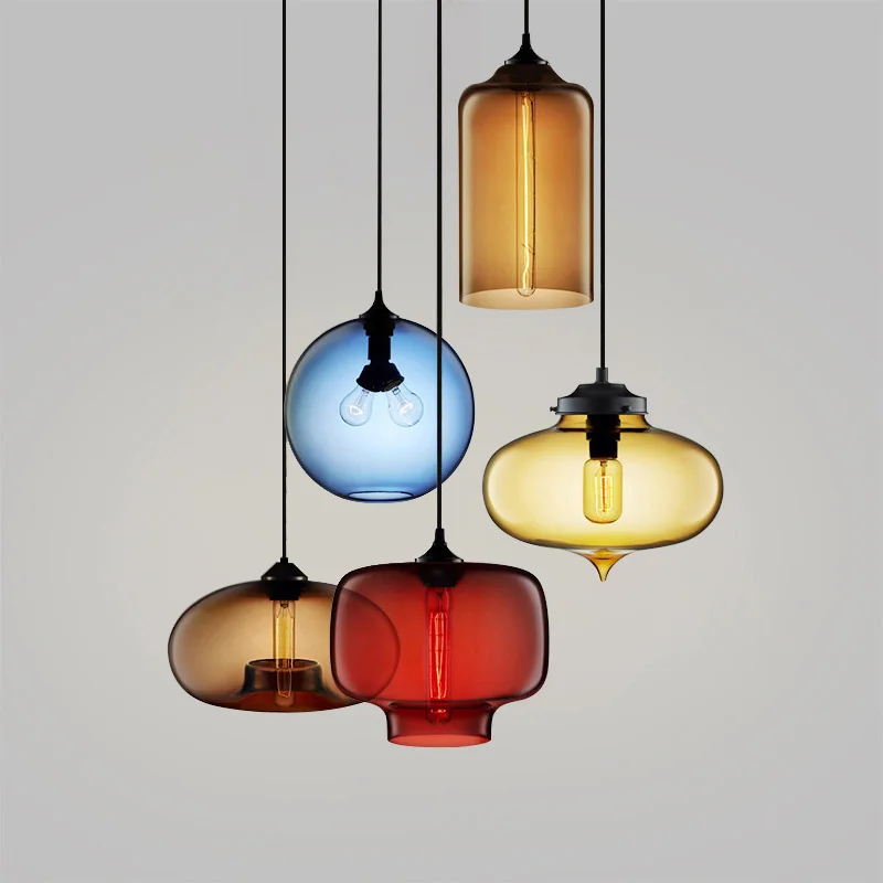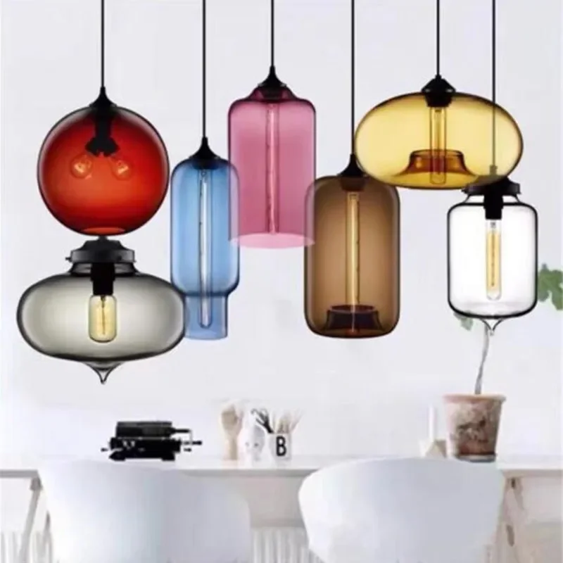 Colorful Glass Chandelier Pendant Light Blown Lampshade Glass Ceiling Hanging Lamps Living Room Coffee Room Office Indoor Light