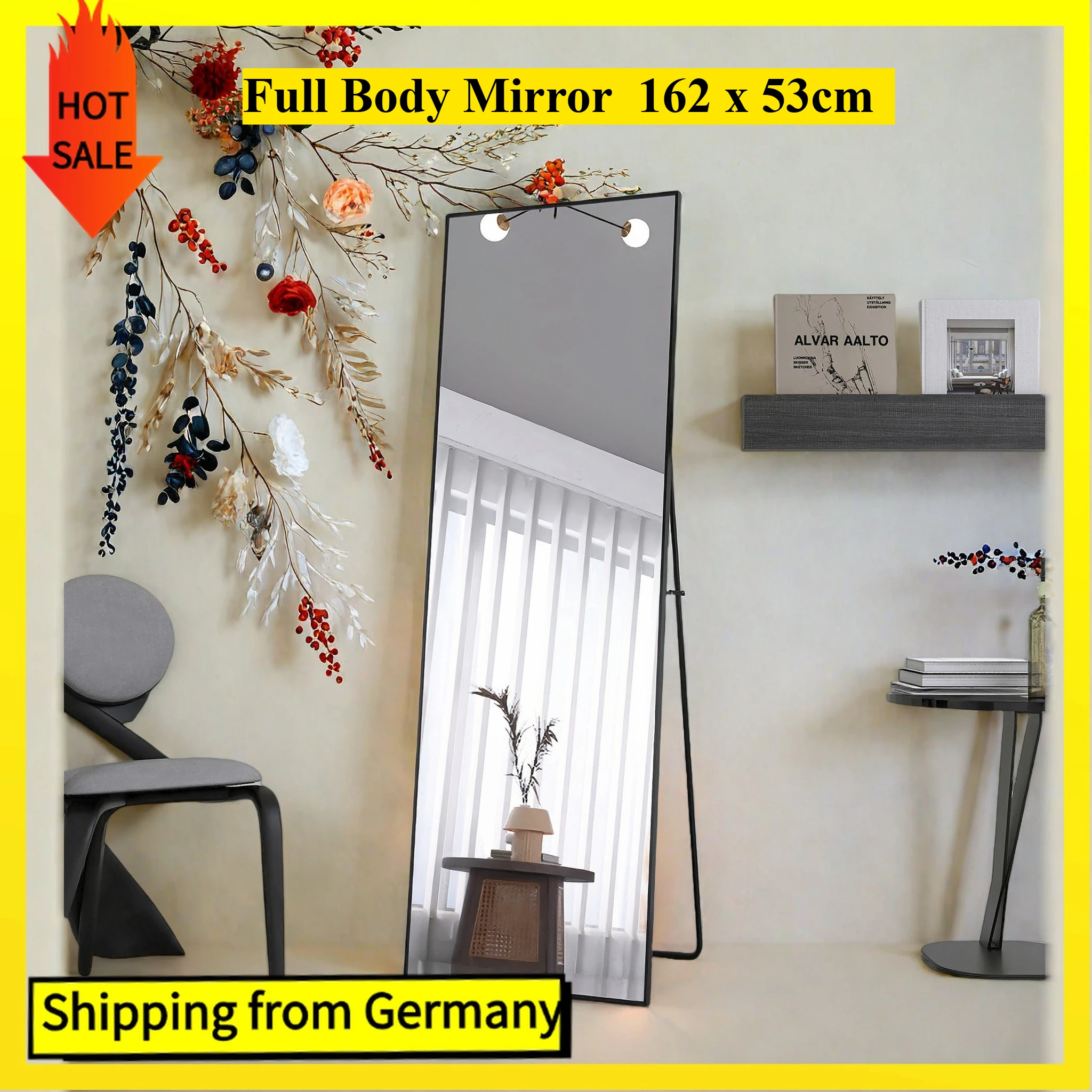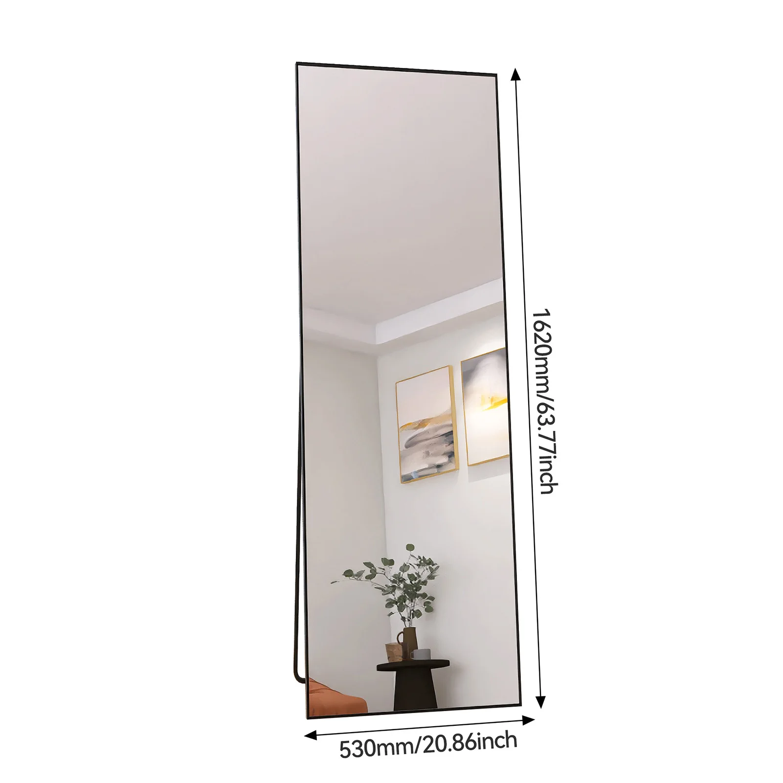 Full length mirror: the size of the mirror is 200 x 100 cm. (Due to manual measurement, the length may have an error of 1-2 cm). The wall mirror with modern metal frame has a simple, elegant design and is a good decoration for home, bathroom, changing room, bedroom, wardrobe or hallway。
