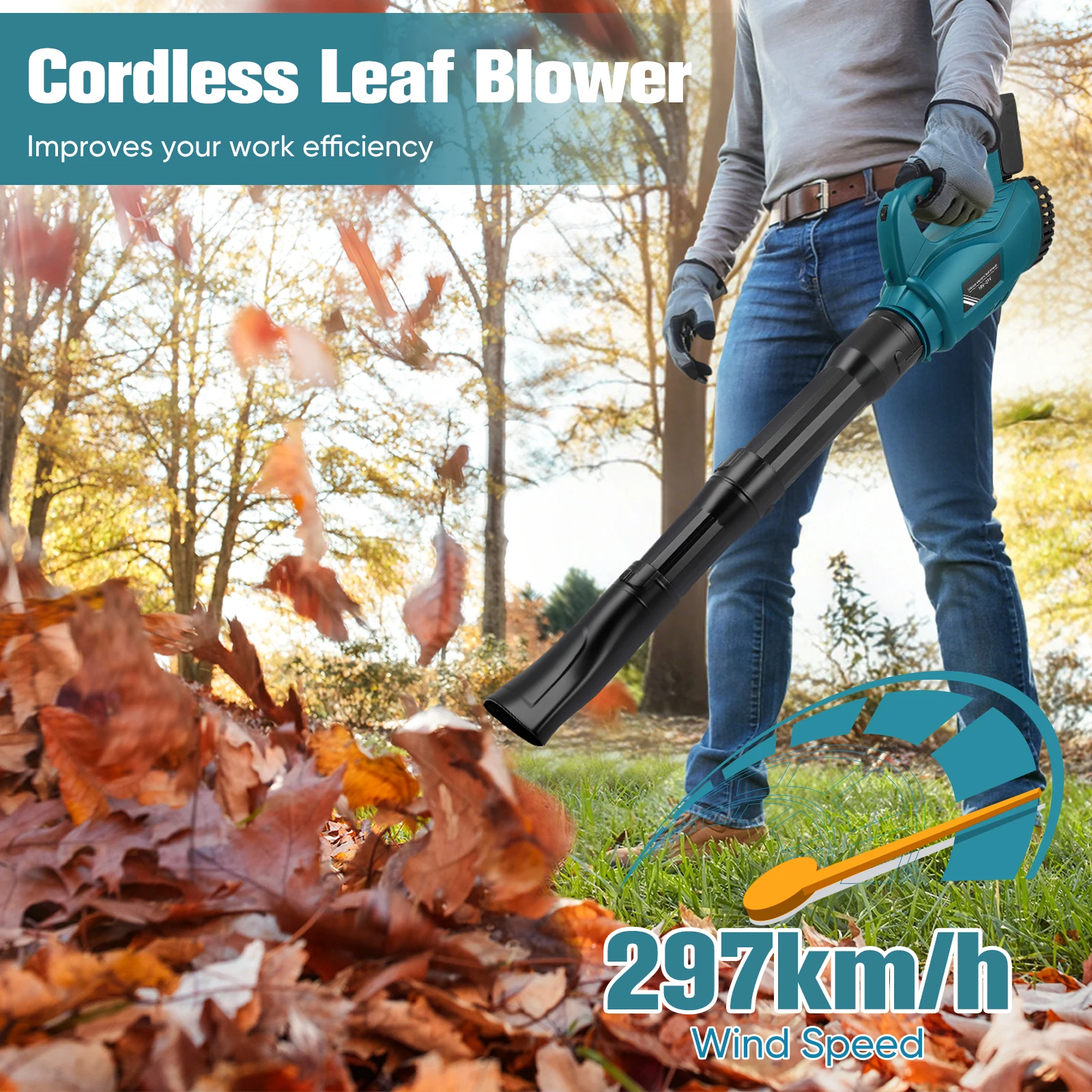 Cordless Leaf Blower, 297 KM/H Max Speed, 6 Adjustable Speeds, Interchangeable Nozzles, Compatible with 18V Batteries, Leaf Blowers for Blowing Leaves, Patio Cleaning, Lawn Care, and Dust
