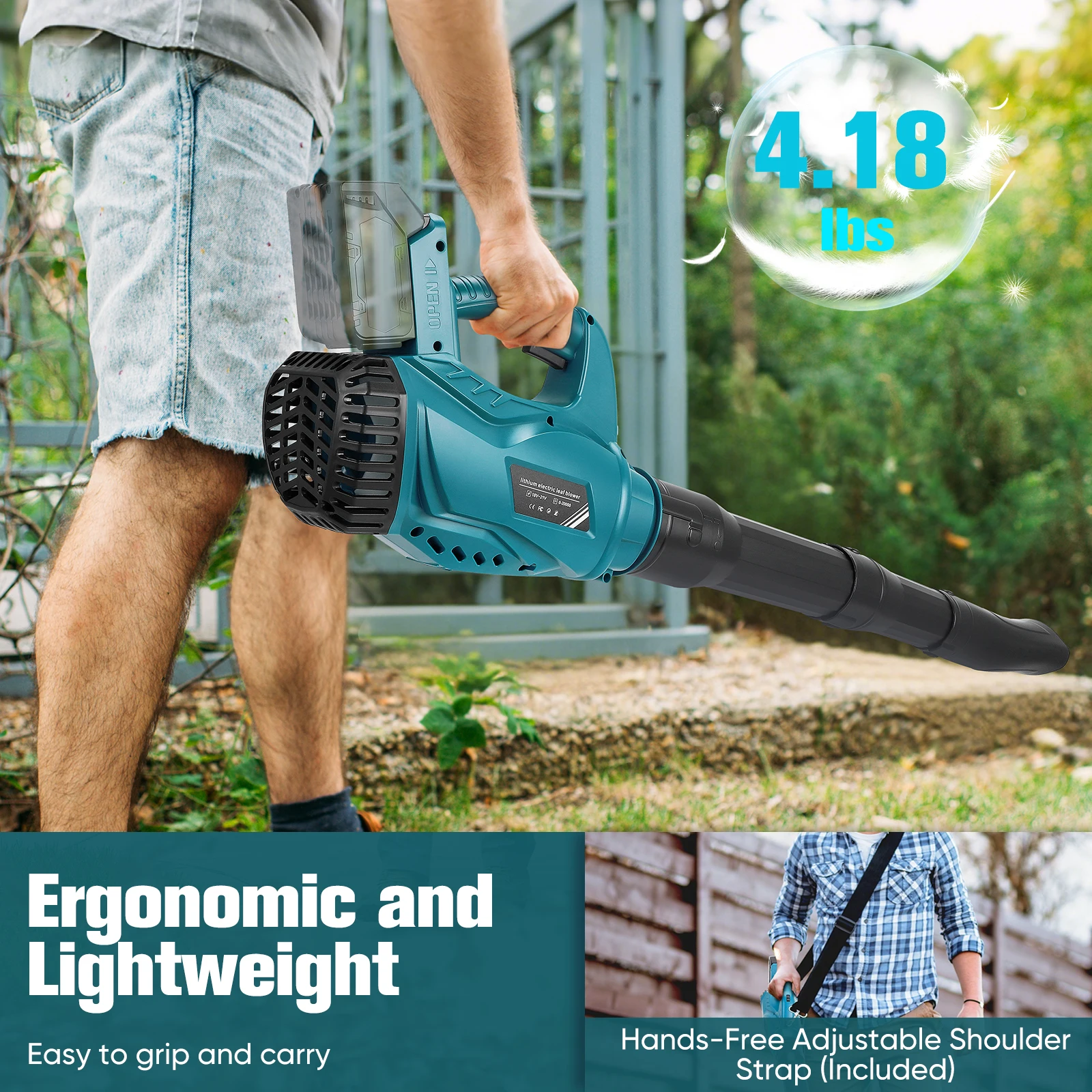 Weighing just 4.18 lbs, this blower is designed for ease of use. The adjustable shoulder strap ensures comfortable carrying, enabling hands-free movement during prolonged tasks.