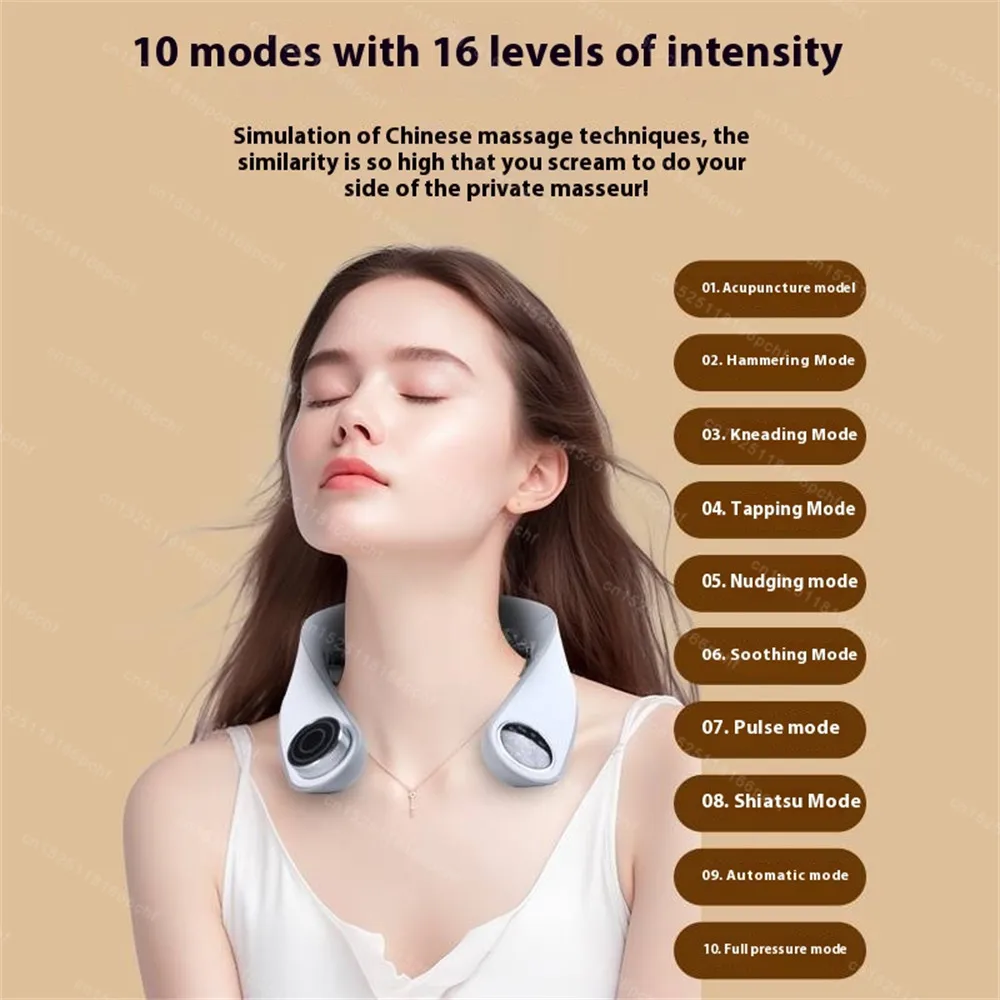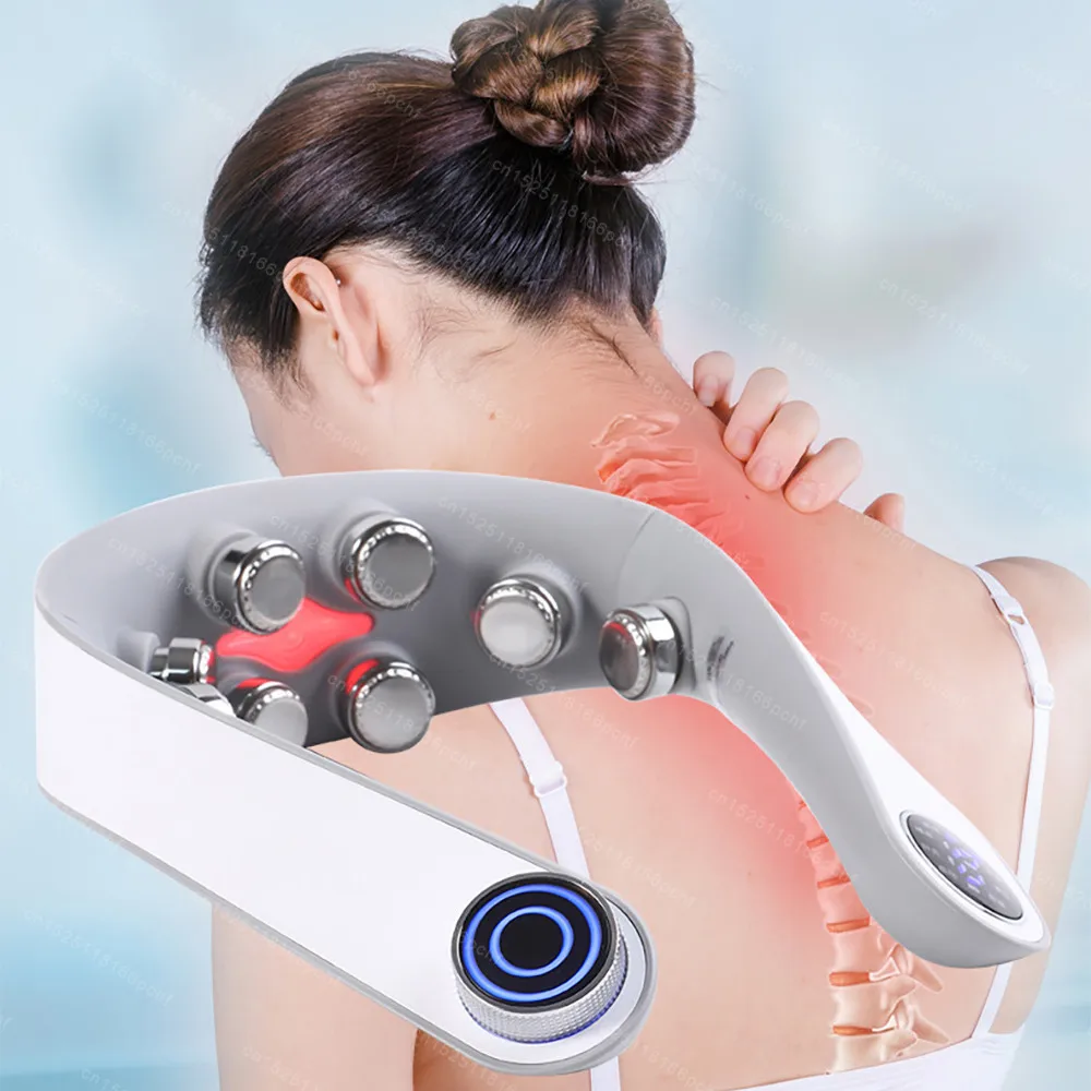 Electric Back Neck Nuscle Massager Tens Pulse Shoulder Neck Vibration Massage Devices Heating Relieve Pain Muscle Health Care