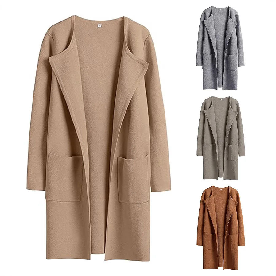 European Notched Lapel Wool Coat – Women’s Trench Pea Coat, Fashion Winter Felted Overcoat for Women