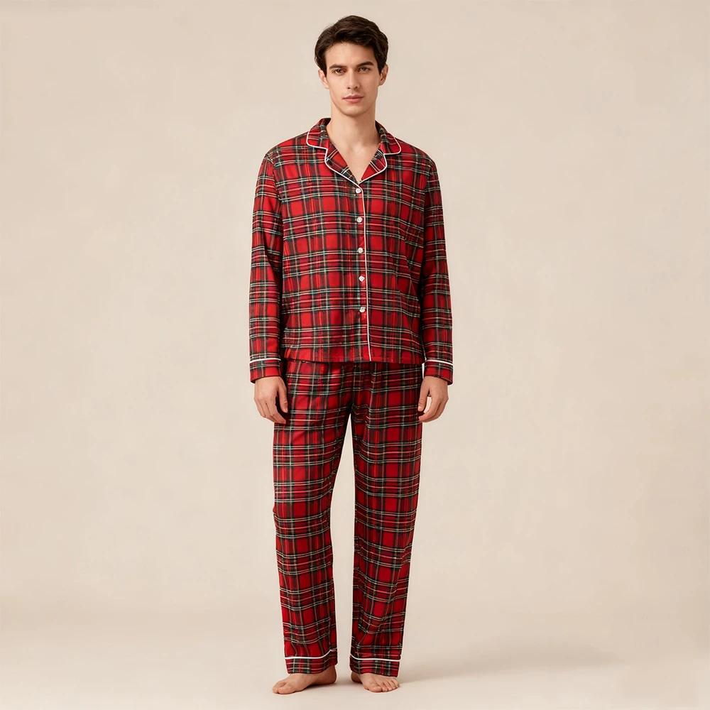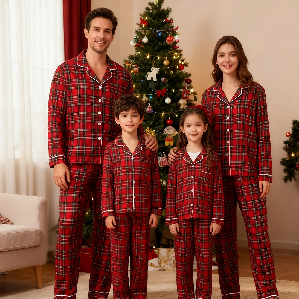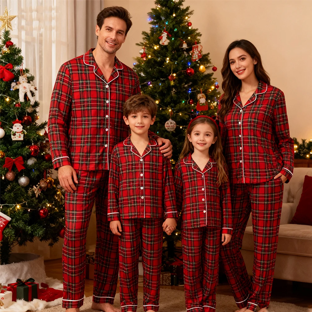 Family Christmas Pajamas Matching Sets Plaid Tops and Elastic Waist Pants Baby Romper Loungewear