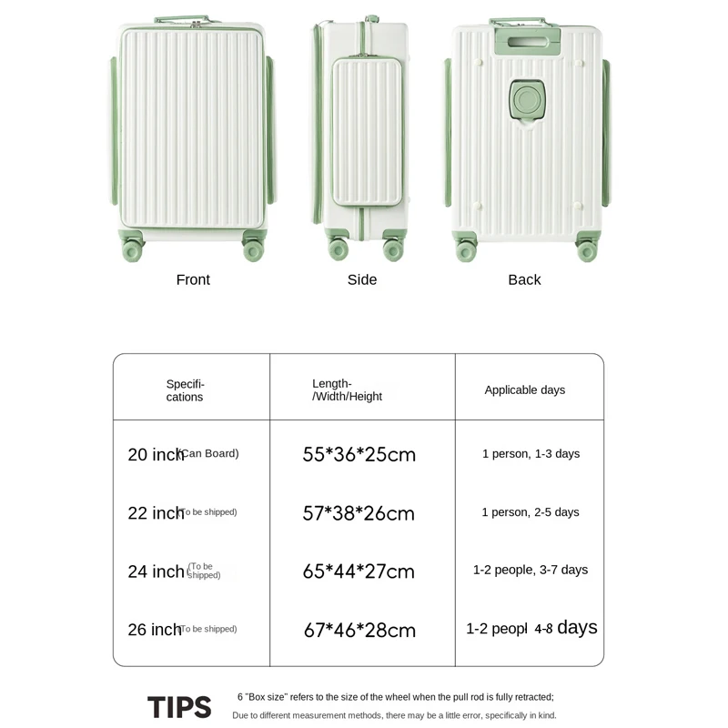 | Feature 1 | Front Side Multi-Sided Open Suitcase |