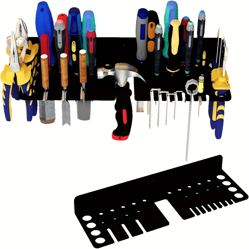 Heavy-Duty Metal Tool Organizer – Wall-Mounted Garage Workshop Storage Shelf with Screw, Pliers, Hammer Holders