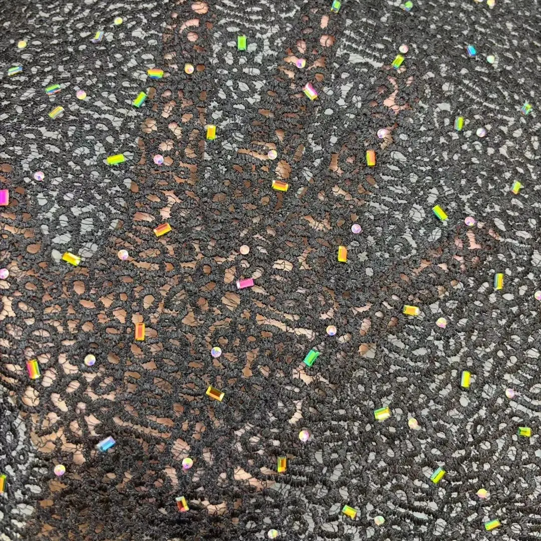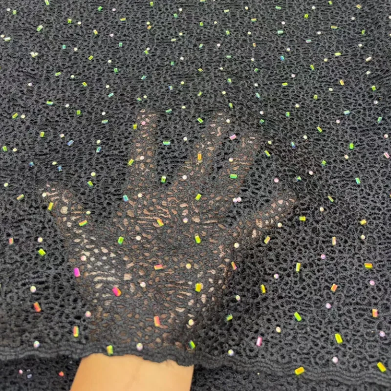 High Quality Water Soluble Cord Lace Fabric Hollow Design Multicolor Rhinestone African Nigerian Lace Fabric 5 Yards for Dress