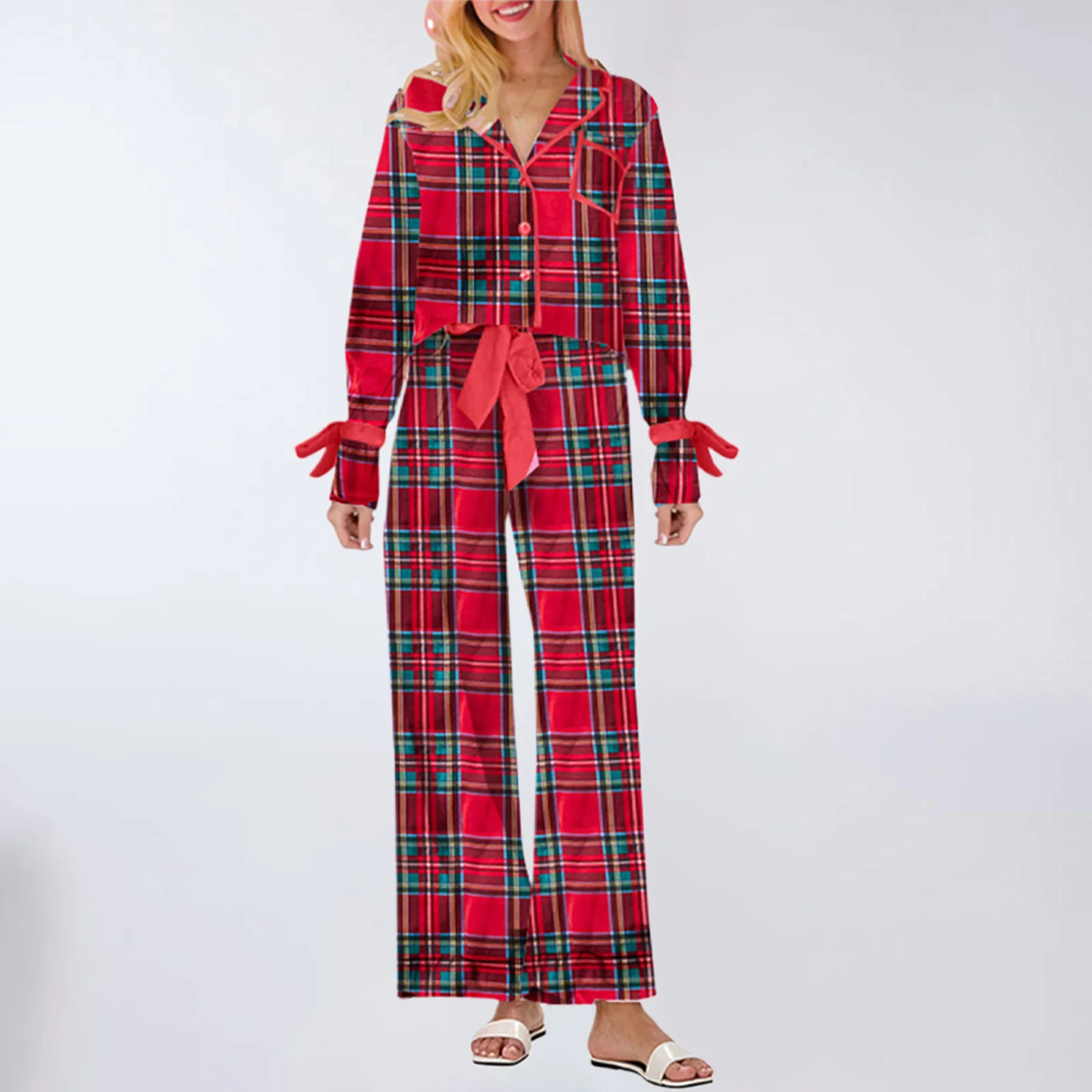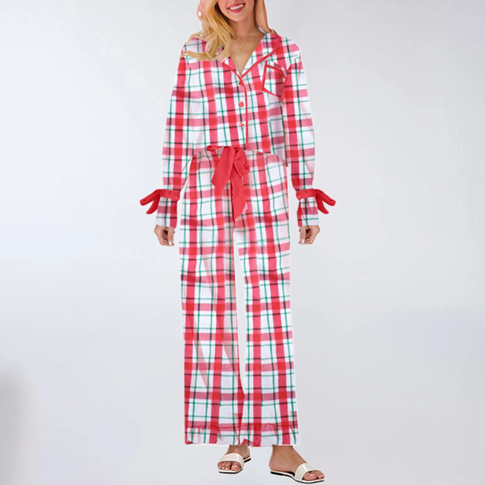 Hirigin Mommy and Me Matching Christmas Pajamas Set Bow Tie Shirt Pants Xmas Pjs Set 2 Piece Jemmies for Women Girl