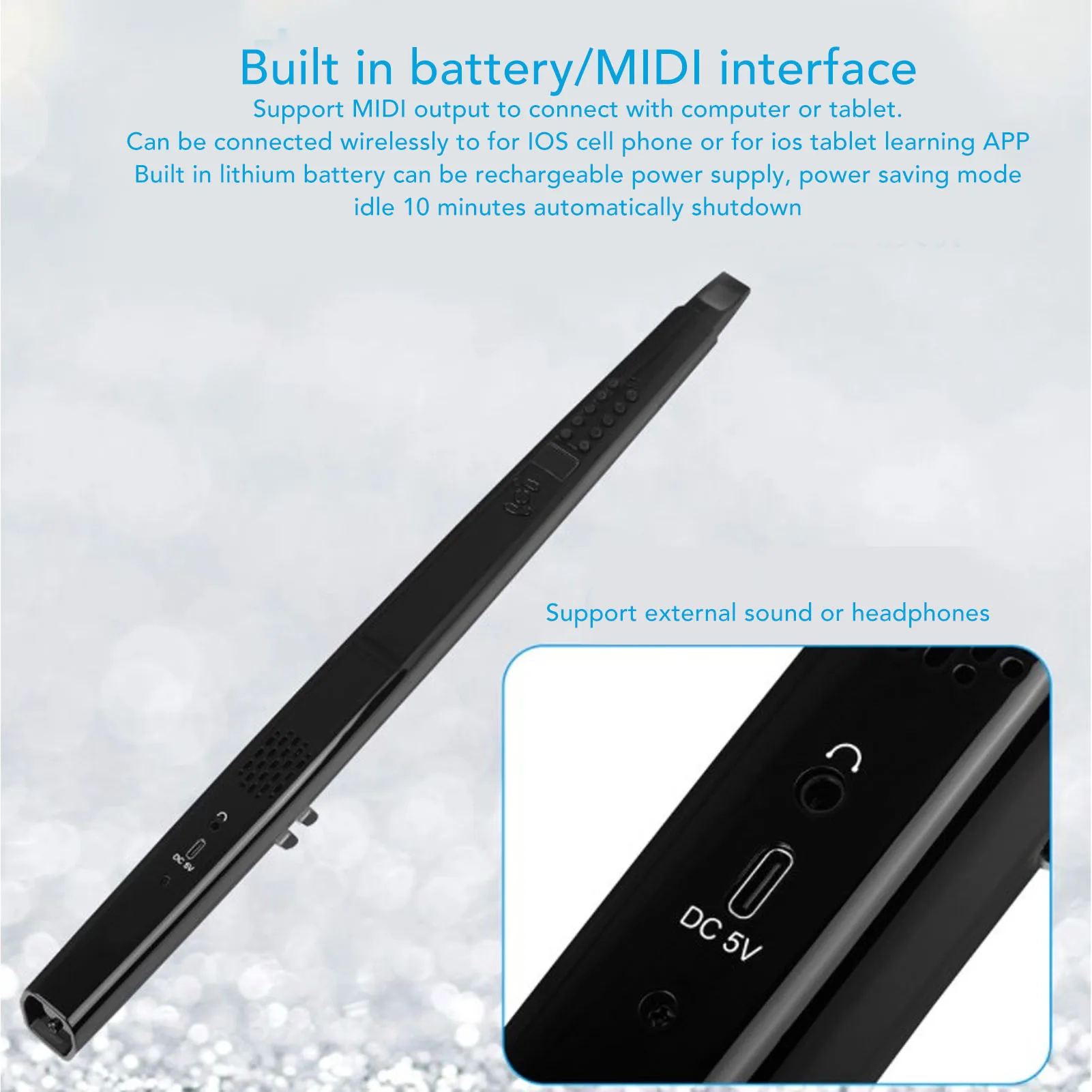 4. LONG BATTERY LIFE: Digital wind instrument set built in high capacity 800 mAh lithium battery, fully charged can enjoy playing for 4 hours, support the connection of wirelessorwired MIDI.