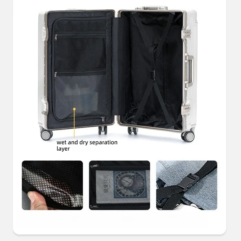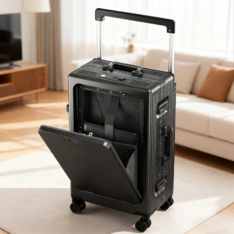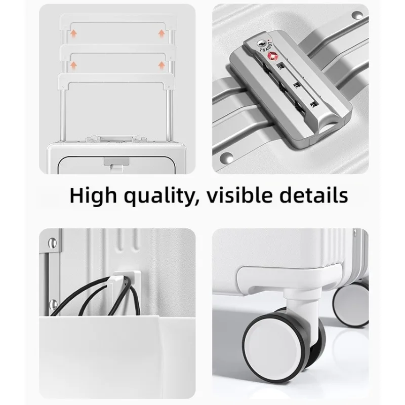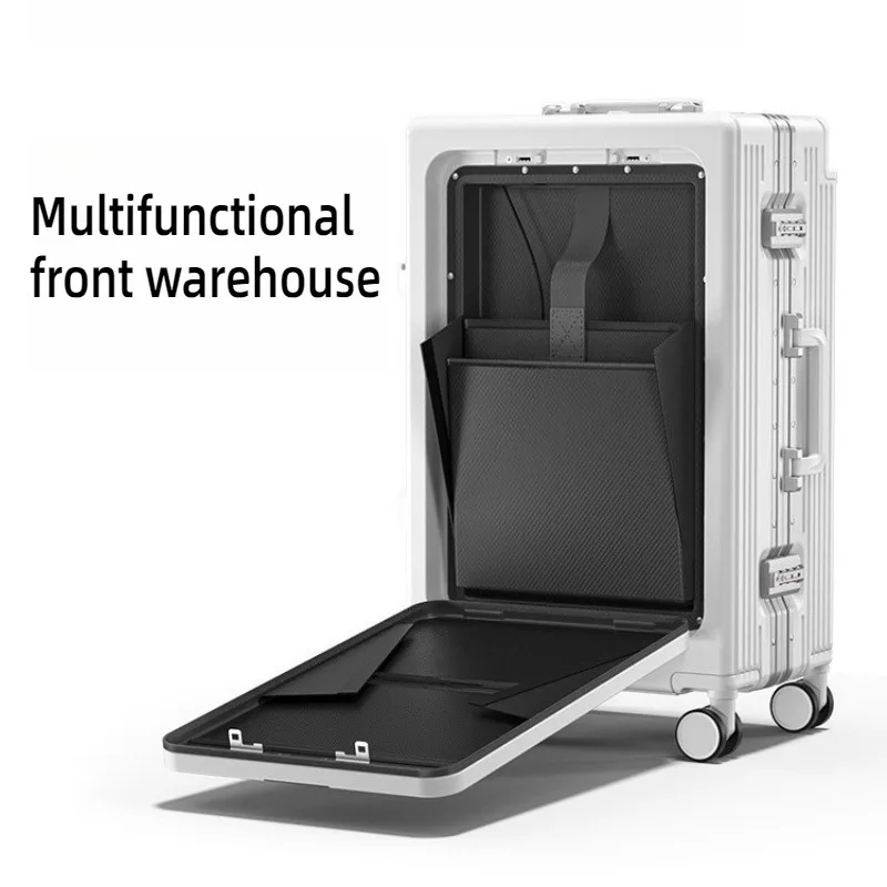 High Quality Wide Trolley Luggage Front Opening Multi-Function USB Charging Port 20Inch Boarding Lockbox Business Suitcase