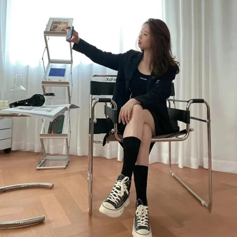 Nordic Designer Vasily Casual Single Chair,vintage Industrial Style Bauhaus Saddle Leather Photography Sofa Chair Dining Chairs