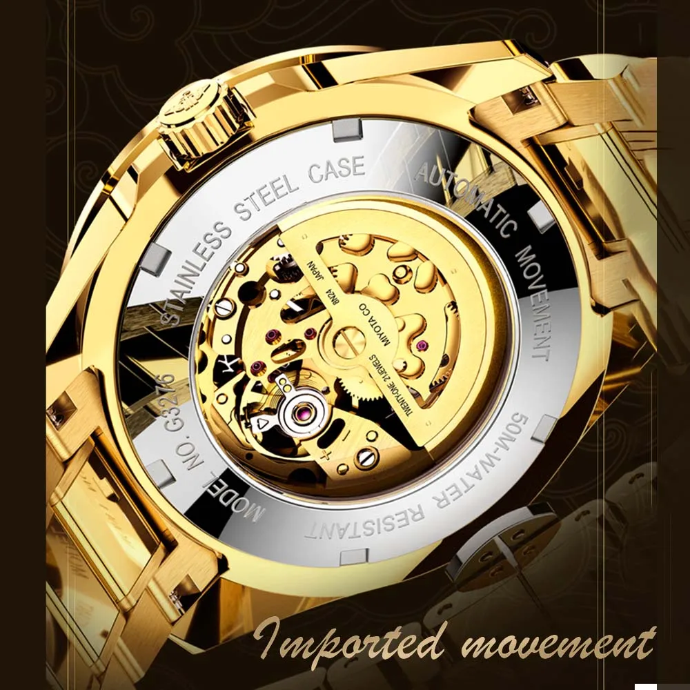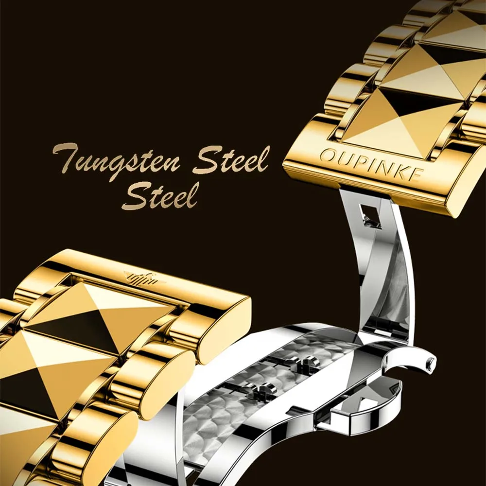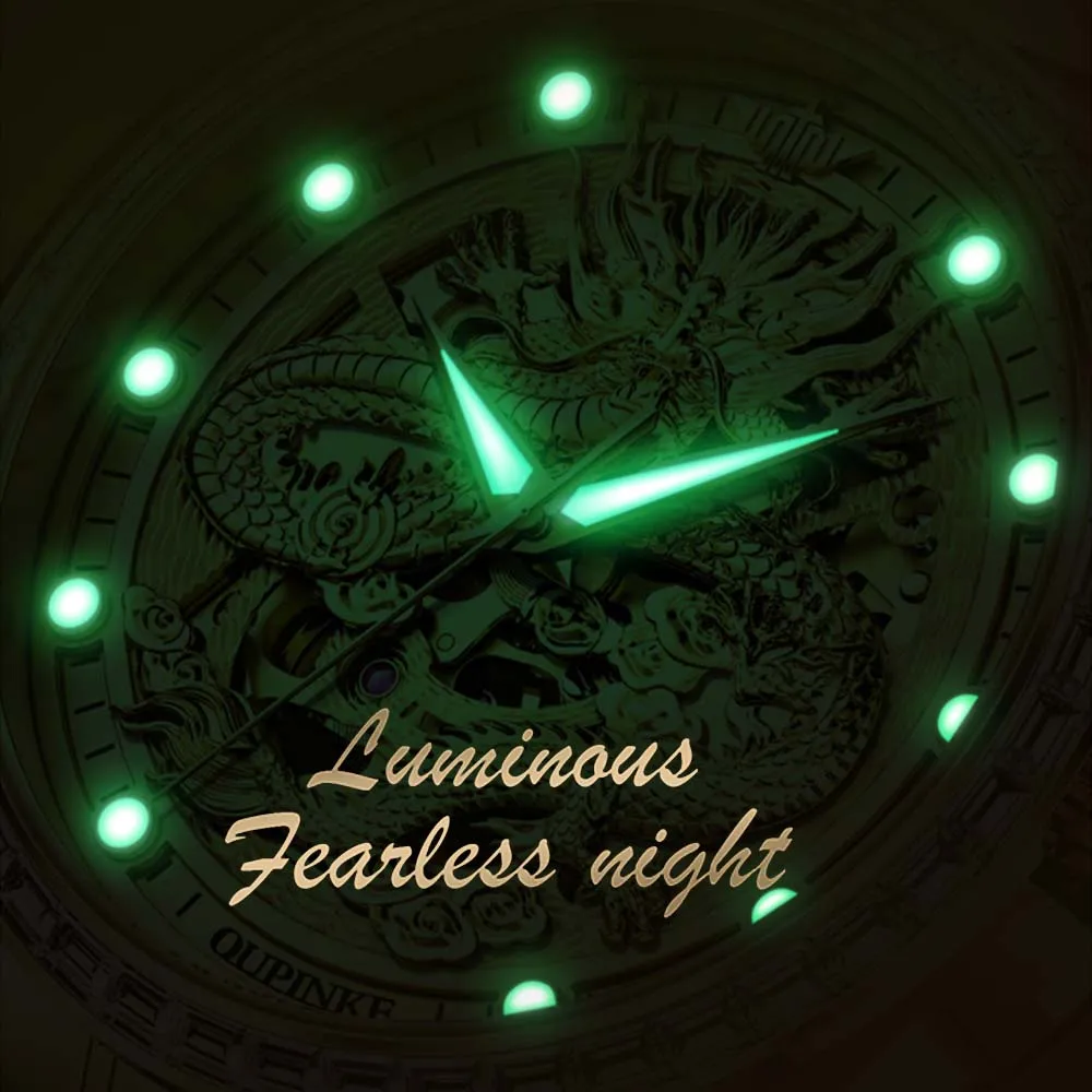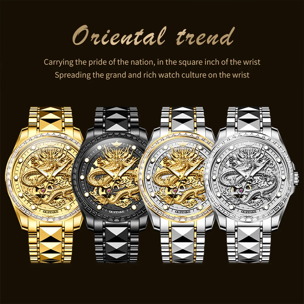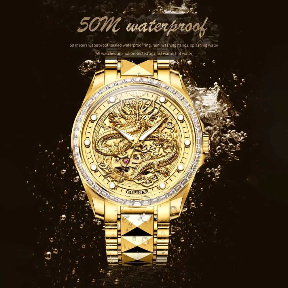 OUPINKE Men's Watches Top Brand Automatic Mechanical Wristwatch 50m Waterproof Diamond Studded Dragon 3D Dial Luxury Watch Gift