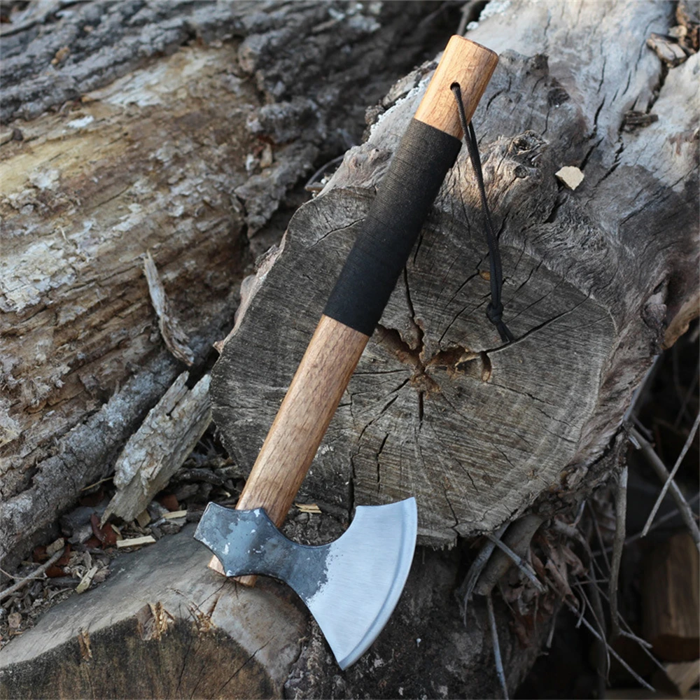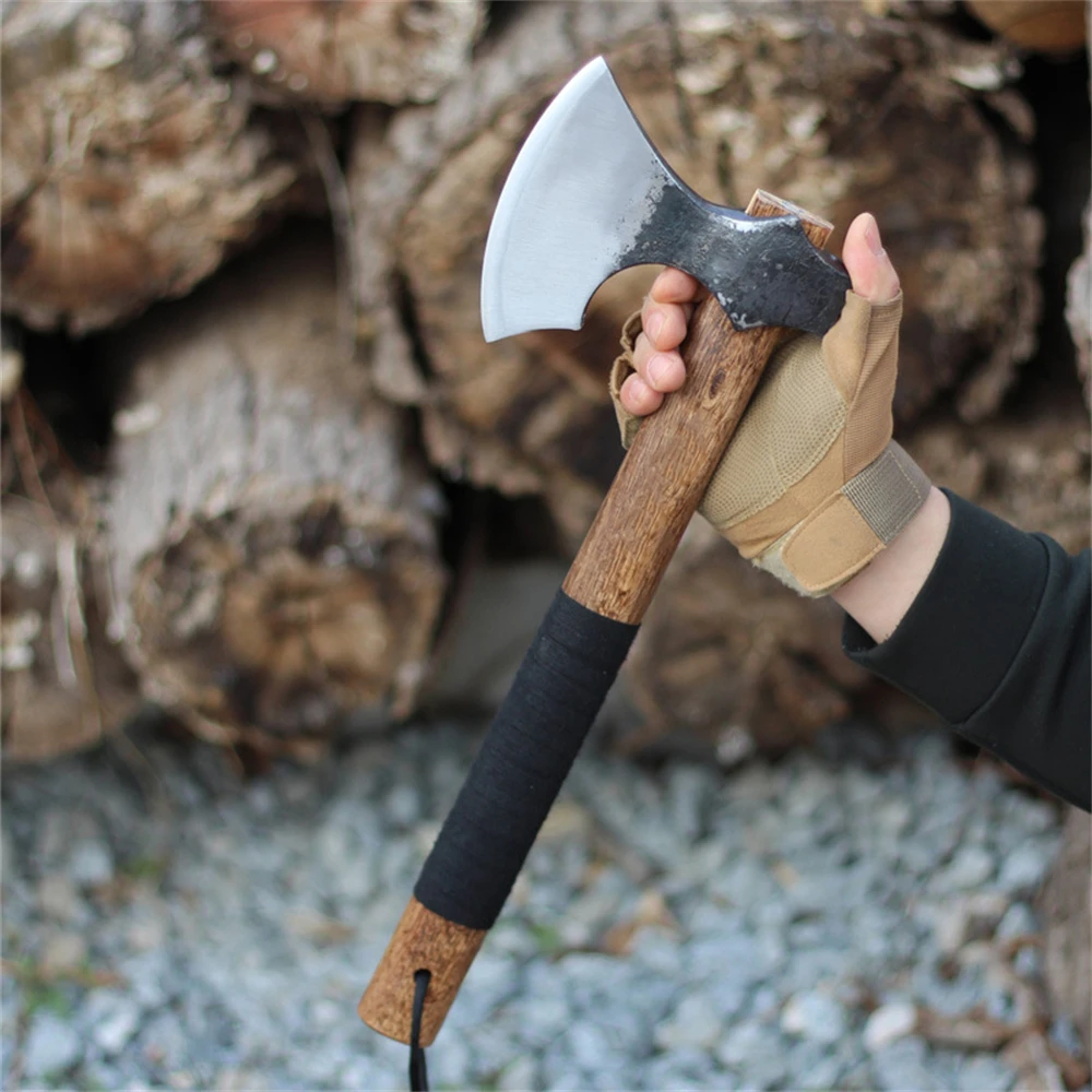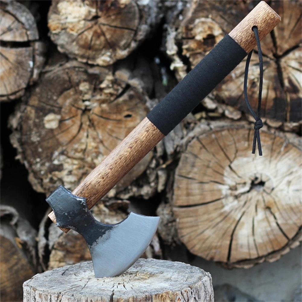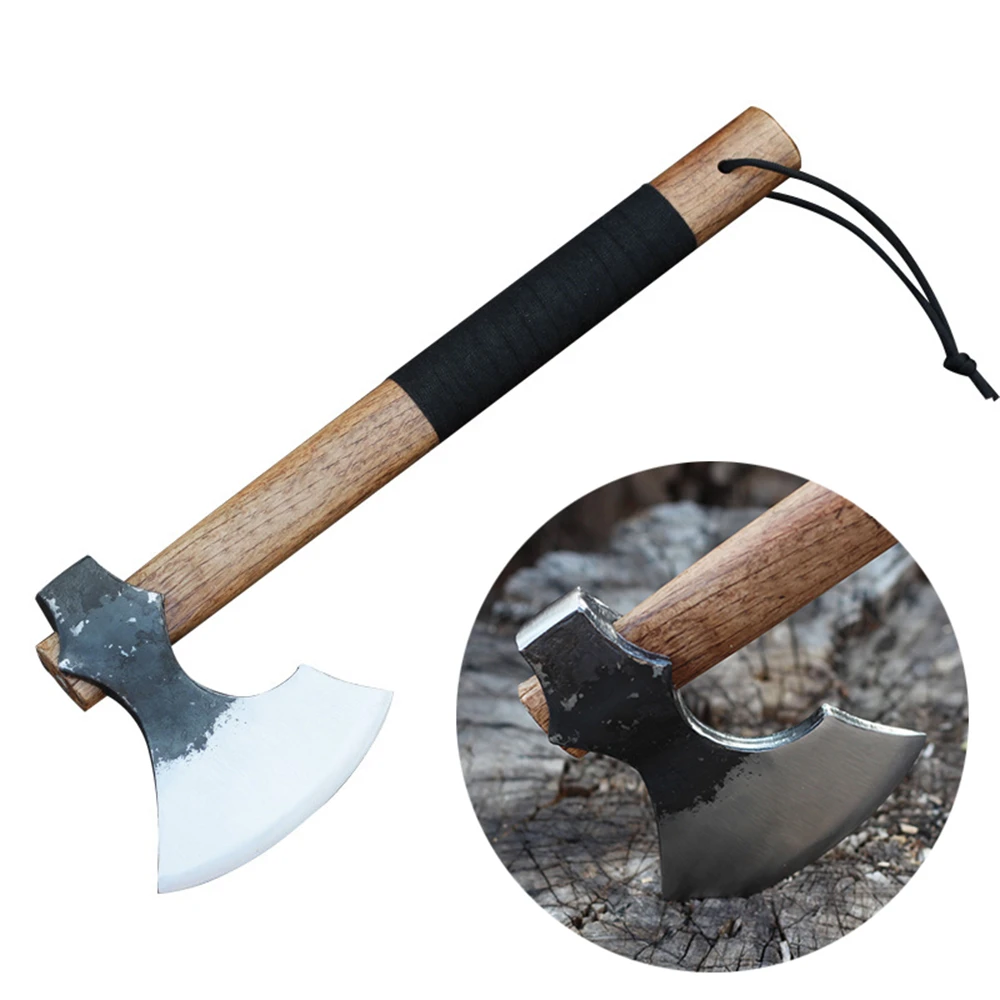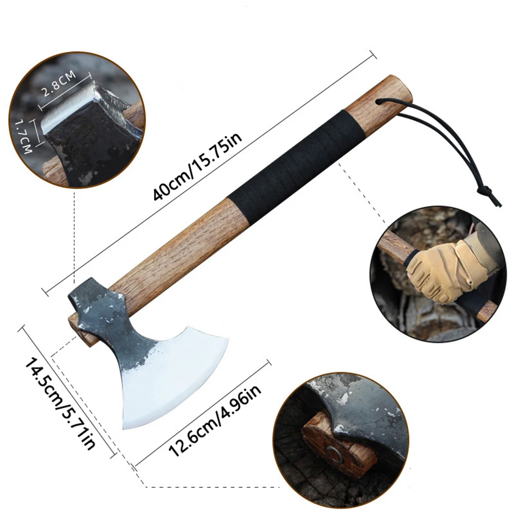 Outdoor Qinggang Wooden Handle Camping Logging Axe, Hand Axe Camping Tactical Survival Axe,Woodworking Multifunctional Axe