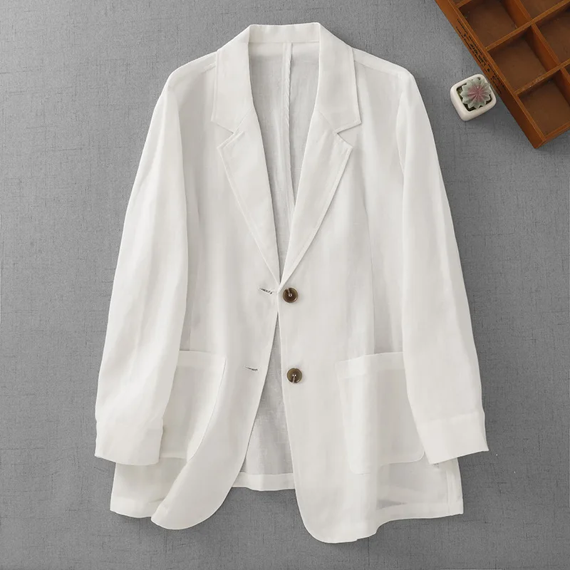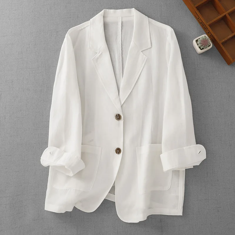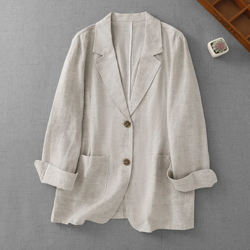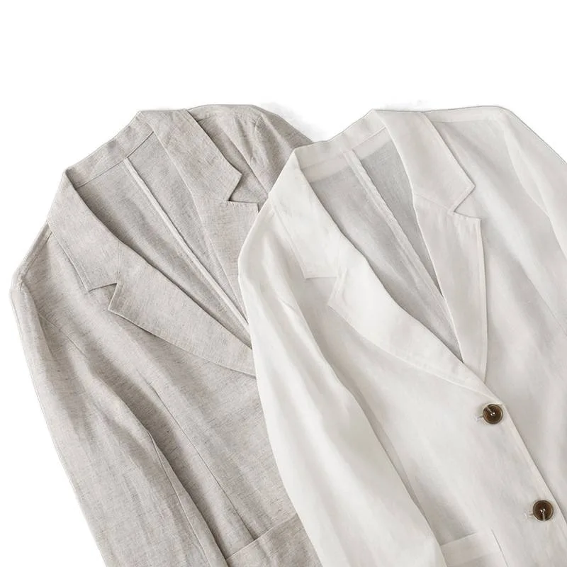 Embrace the charm of retro fashion with this Korean-style, artfully tailored cotton-linen jacket, perfect for the summer season.