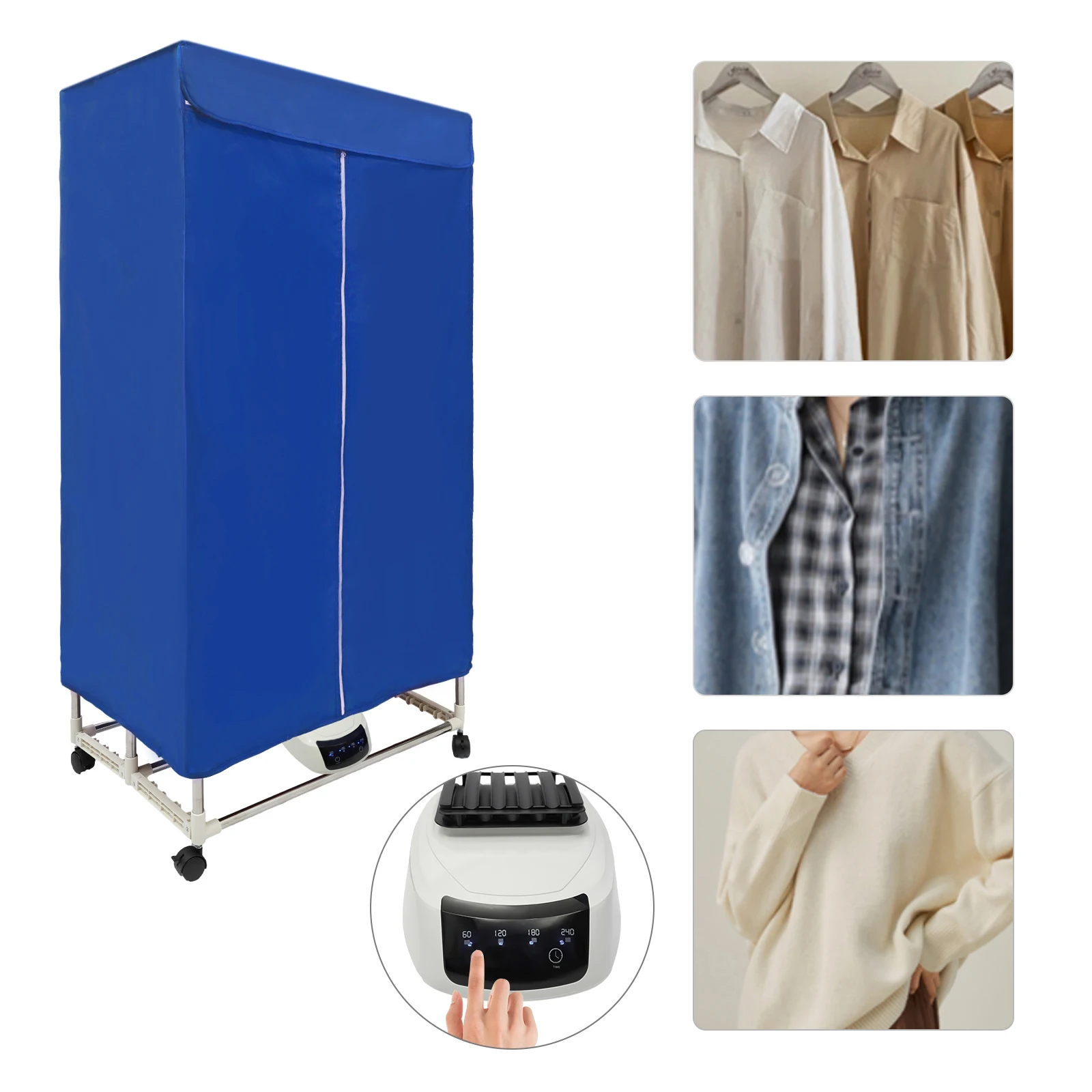 Thoughtful Design: You can set the drying time (60/120/180/240min) according to the different clothes without the need to be around all the time. The universal wheels( two of them has brakes) make it easy for you to move and fix the product.