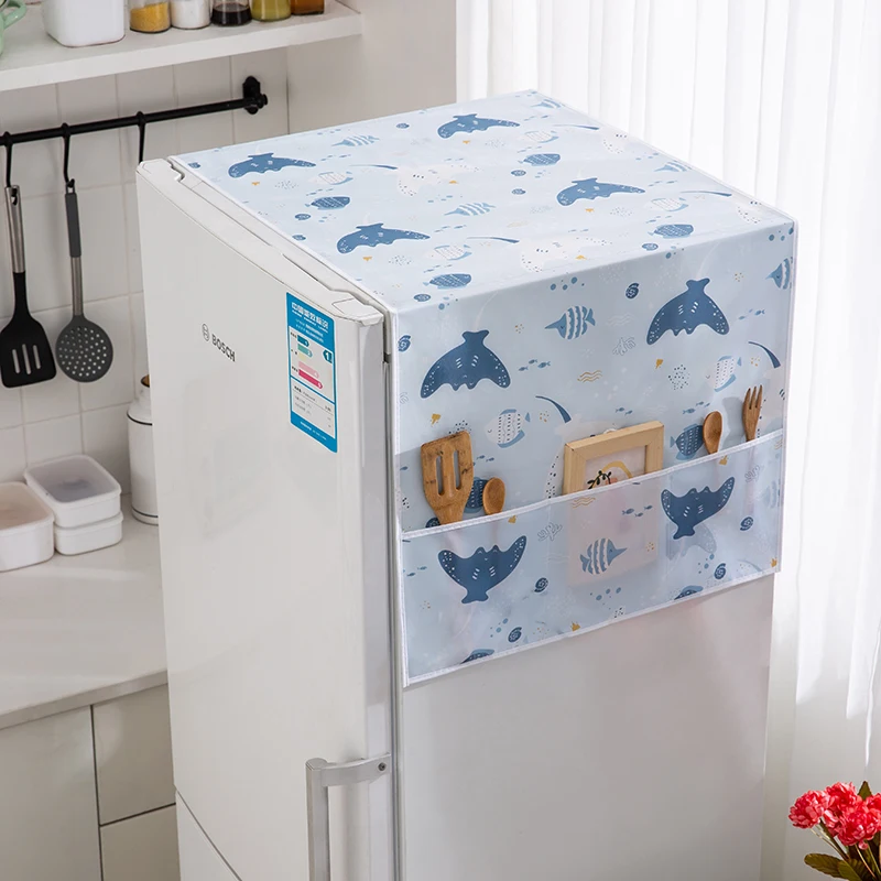 Refrigerator Dust Cover Side Storage Bag Portable Organizer Nordic Print Washing Machine Dust Cloth Waterproof Washable Textiles