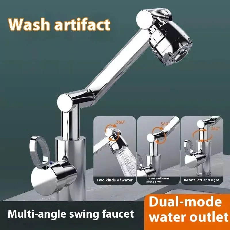 1080° Swivel Bathroom Sink Faucet Mixer Deck Mounted Splash Proof Water Tap Shower Head Aerators Plumbing Tapware For Bathroom