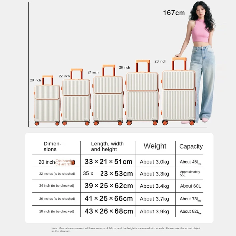| Luggage Size | 22Inches 550mm, 20Inches 500mm, 24Inches 600mm, 26Inches 650mm, 28Inches 700mm |