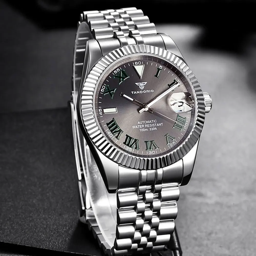 Dial: grey dial; date window with magnifier at 3 o'clock position ;