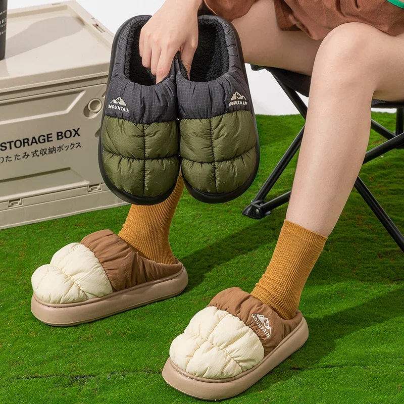 Thick Sole Down Waterproof Women Slippers Fashion Mix Color Non Slip Cotton Shoes Woman Comfy Outdoor Plush Warm Winter Slippers