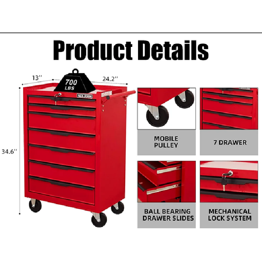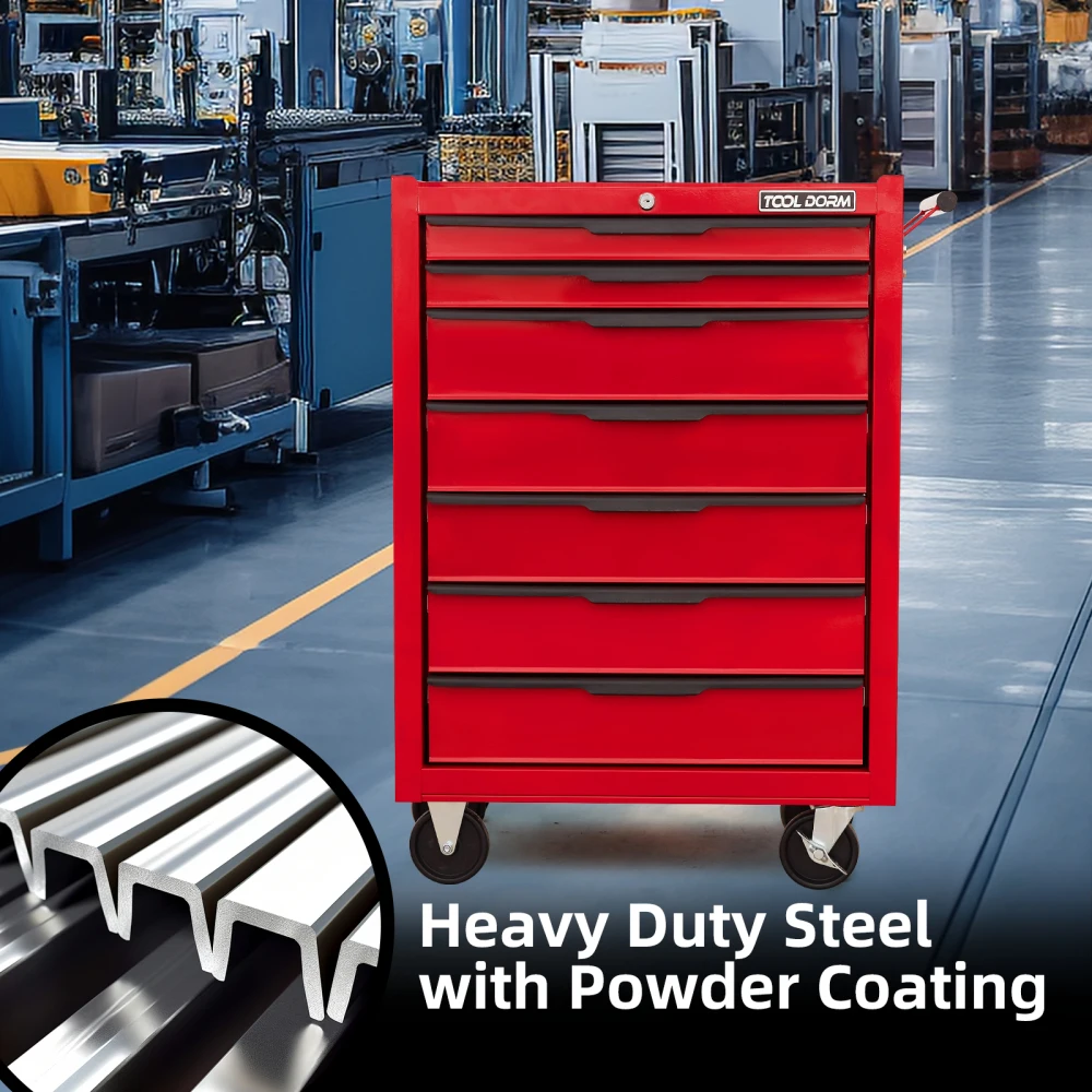 - Stable amd Durable: The rolling toolbox is made of Cold Rolled Steel construction is used for high wear resistance. The surface is treated with a red coating, which has excellent anti-rust and anti-corrosion ability.