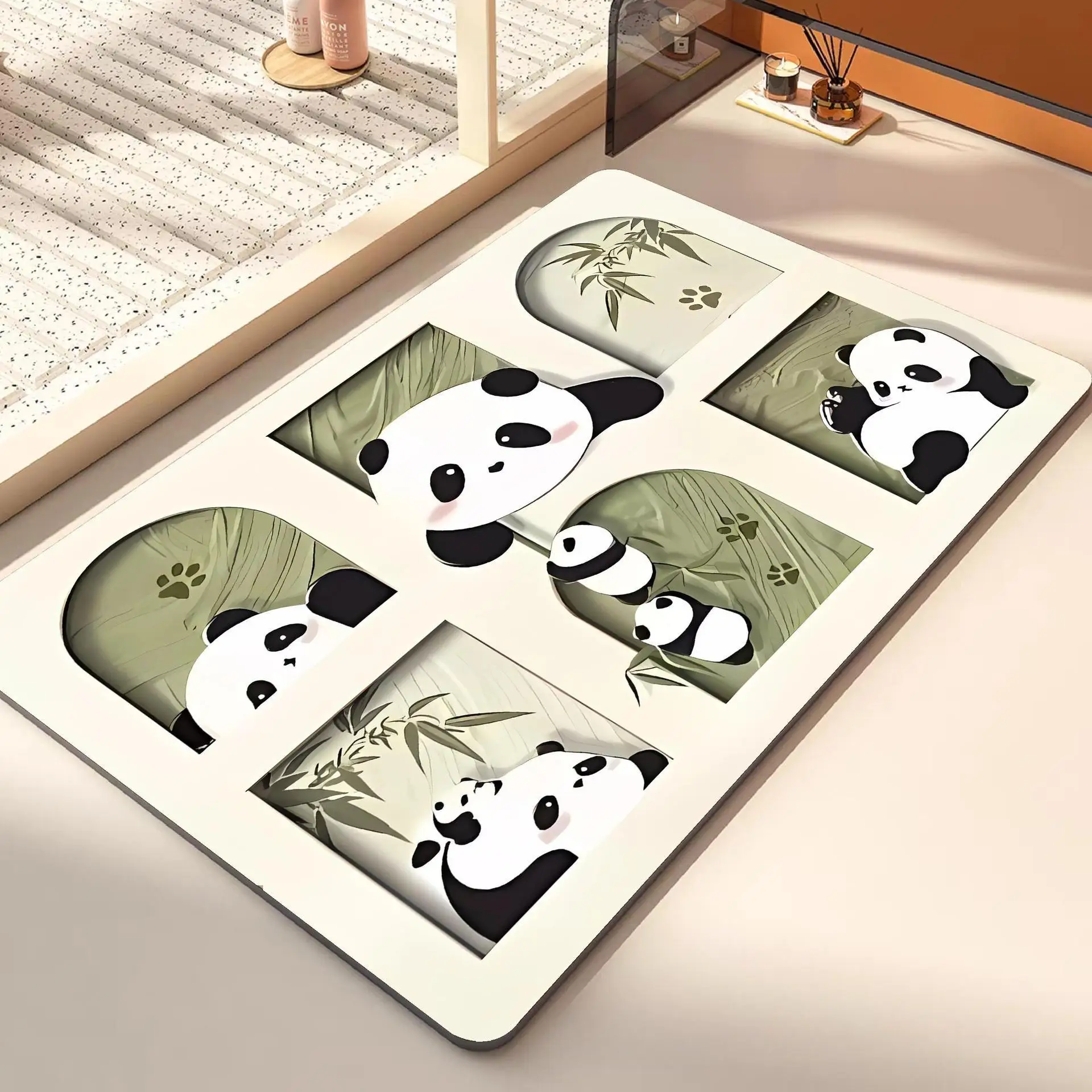 VIKAMA Cartoon Panda Diatom Mud Carpet Bathroom Kitchen Washing Machine Countertop Dust Absorbent Non-Slip Mat Home Decoration
