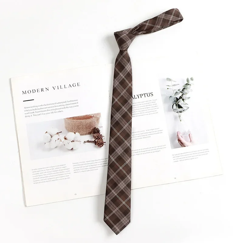 • Retro Japanese College Style : Embrace a vintage aesthetic with this brown plaid tie, inspired by classic Japanese college fashion.