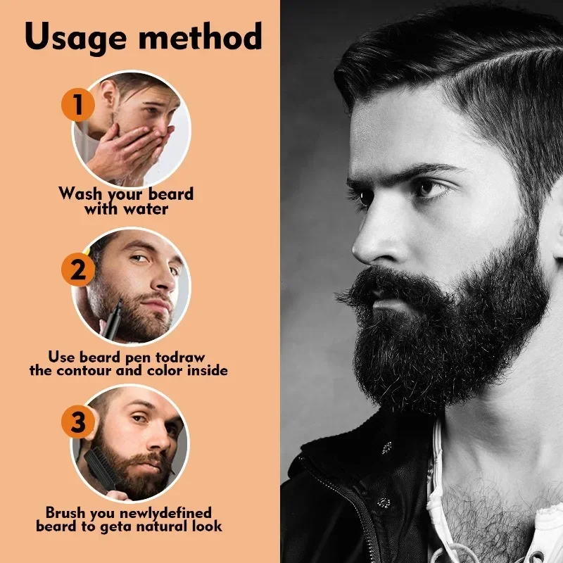 Waterproof Beard Pen Man Moustache Coloring Shaping Tools Thicker Longer Fuller Beard Waterproof Beard Filling Pen Black Hair Pencil