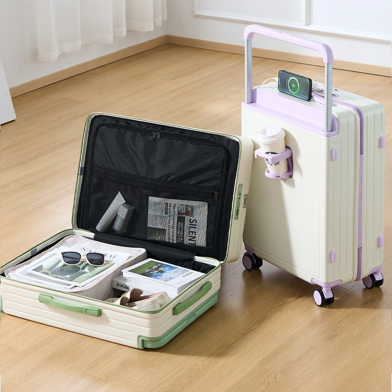 Wide-Handle 20-28 Inch Lightweight Carry-On Suitcase Multi-Functional Travel Luggage with Smooth-Rolling Wheels Suitcase