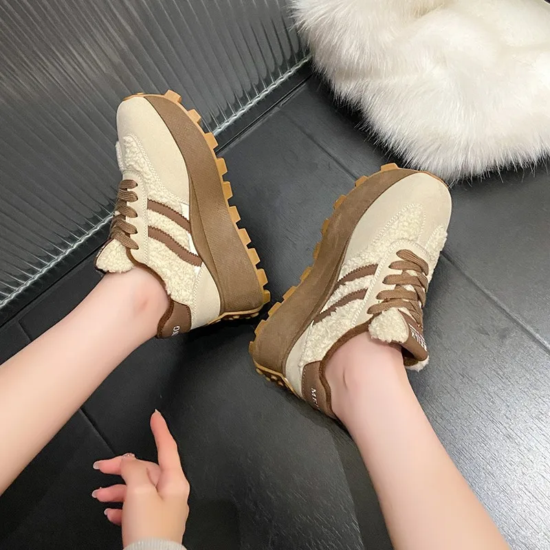 Winter Fashionable Warm Sports Shoes, Outdoor Comfortable Thick-soled Lace-up Vulcanized Shoes, Casual Flat-soled Women’s Shoes