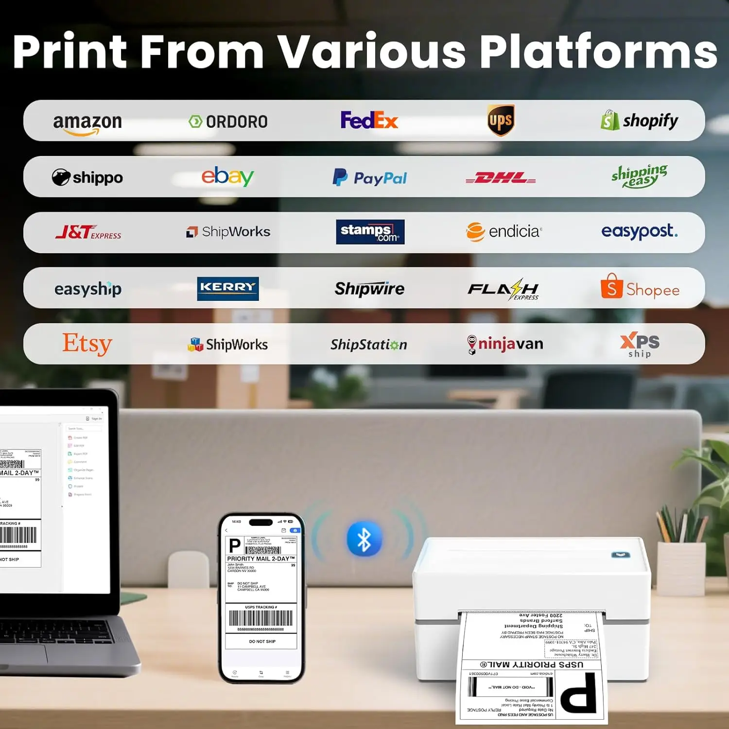 Wireless Bluetooth 4×6 shipping label printer compatible with Android/iOS/Windows/MAC suitable for Amazon Ebay Shopify Etsy USPS