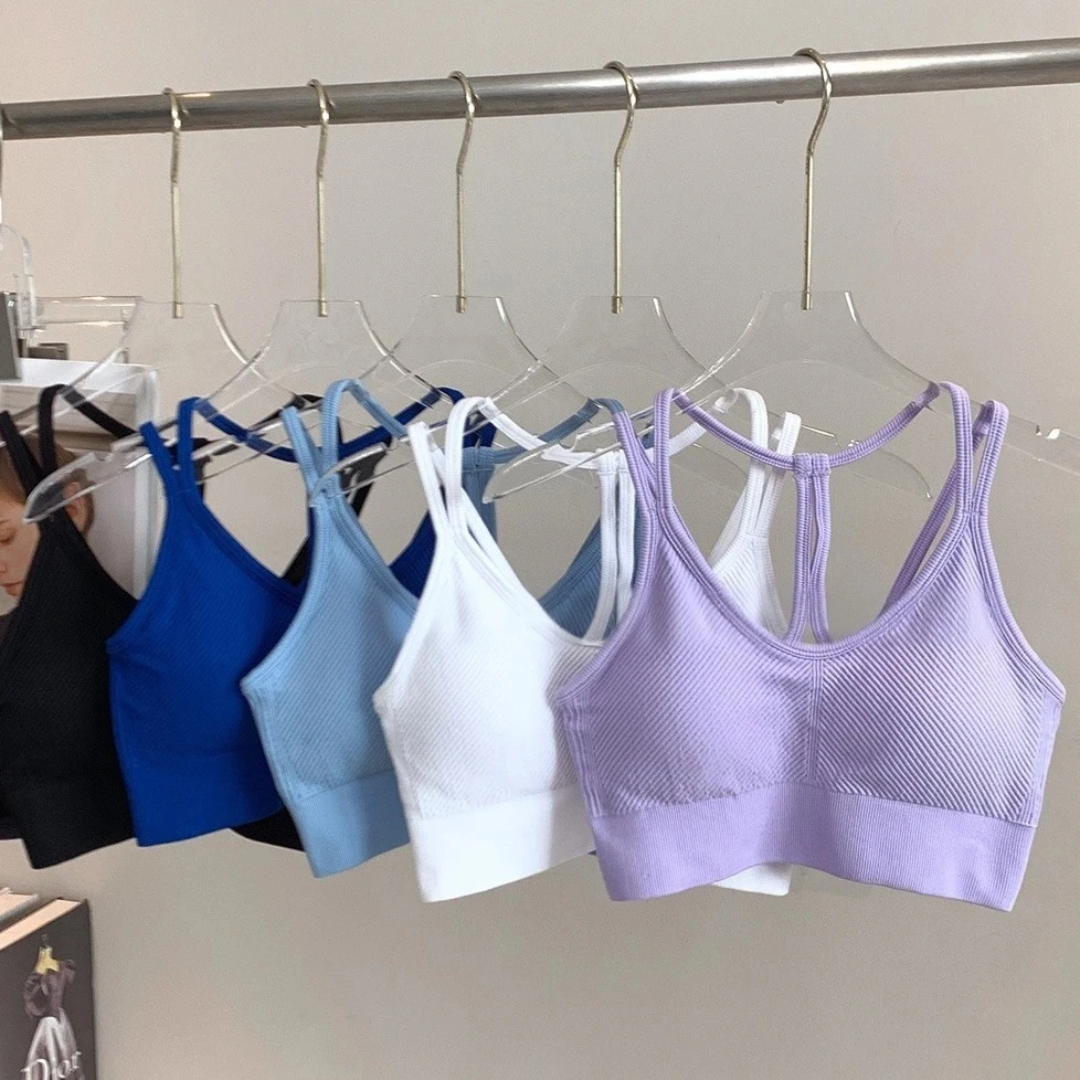 Women’s Seamless Stretchy Backless Spaghetti Strap Sports Bra Tank Top – with Bra Pads for Yoga & Fitness